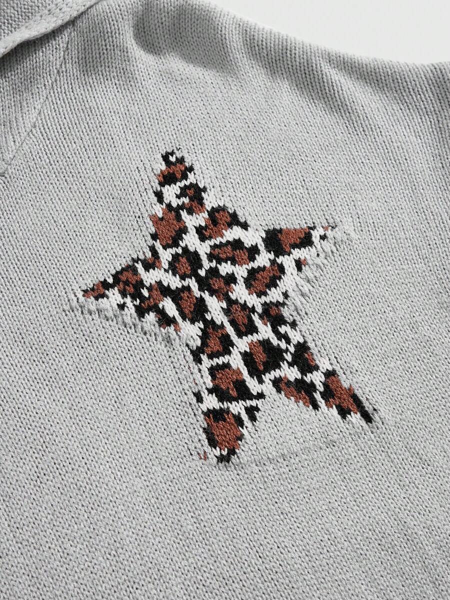 Street Life Men's Leopard Print Star Texture Hooded Long Sleeve Casual Sweatshirt, Suitable For Daily Wear