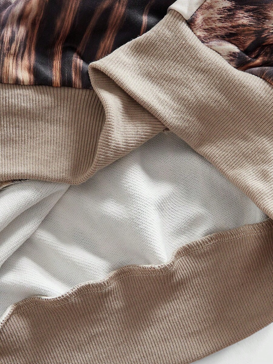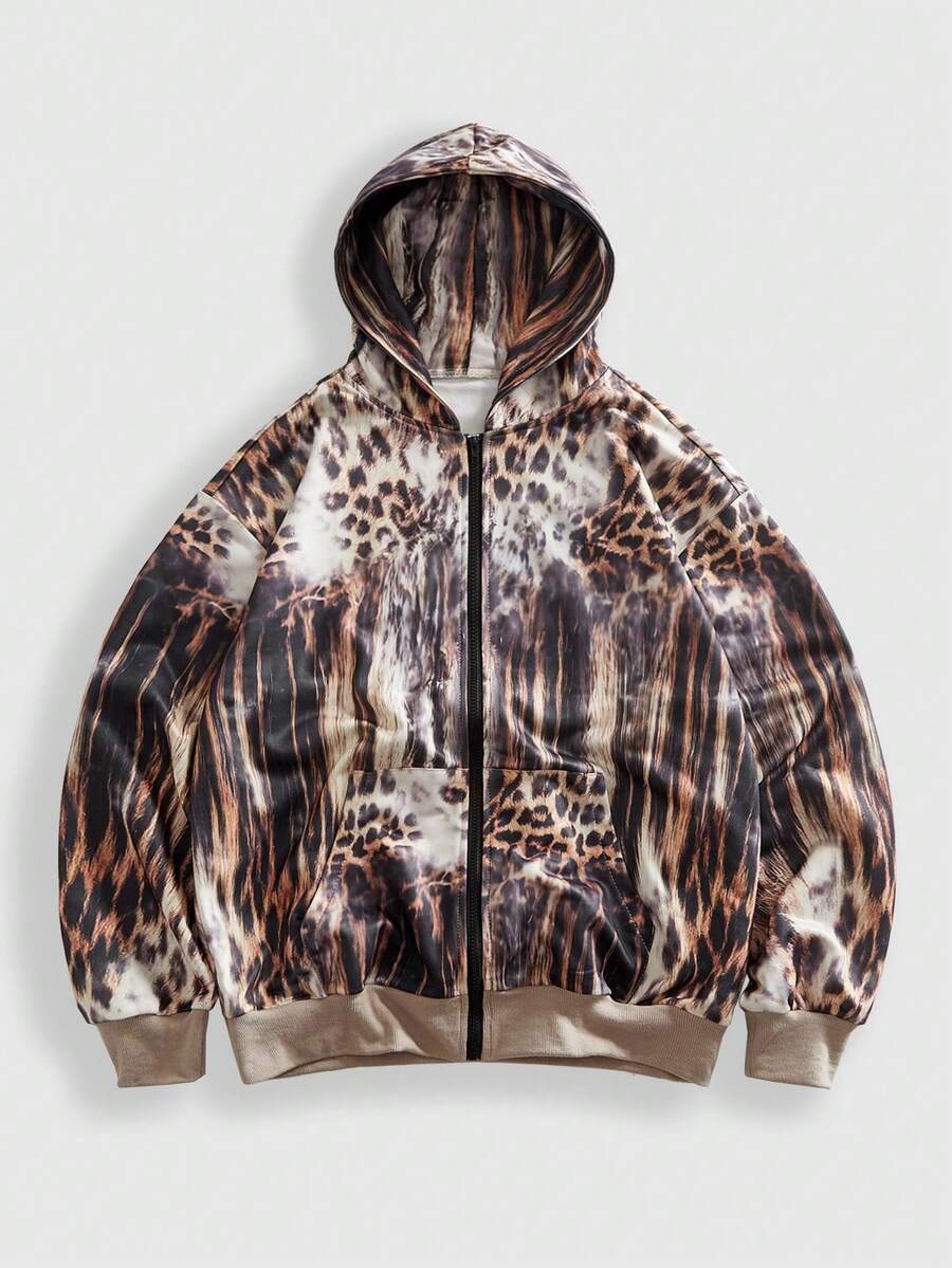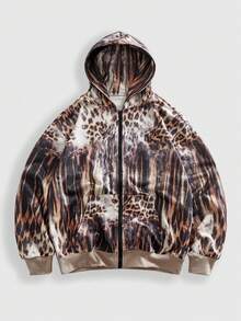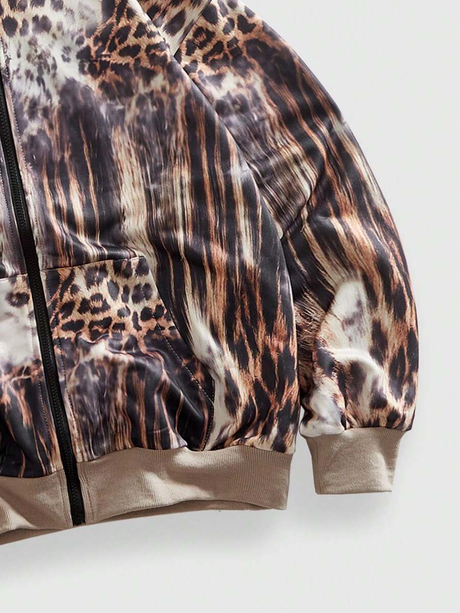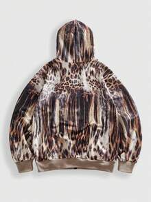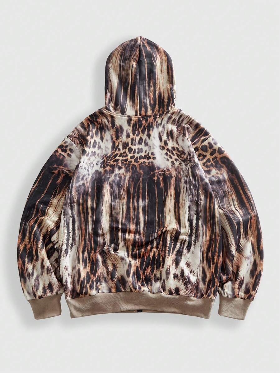 Street Life Men's Leopard Print Streetwear Knit Sweatshirt Sweatshirt