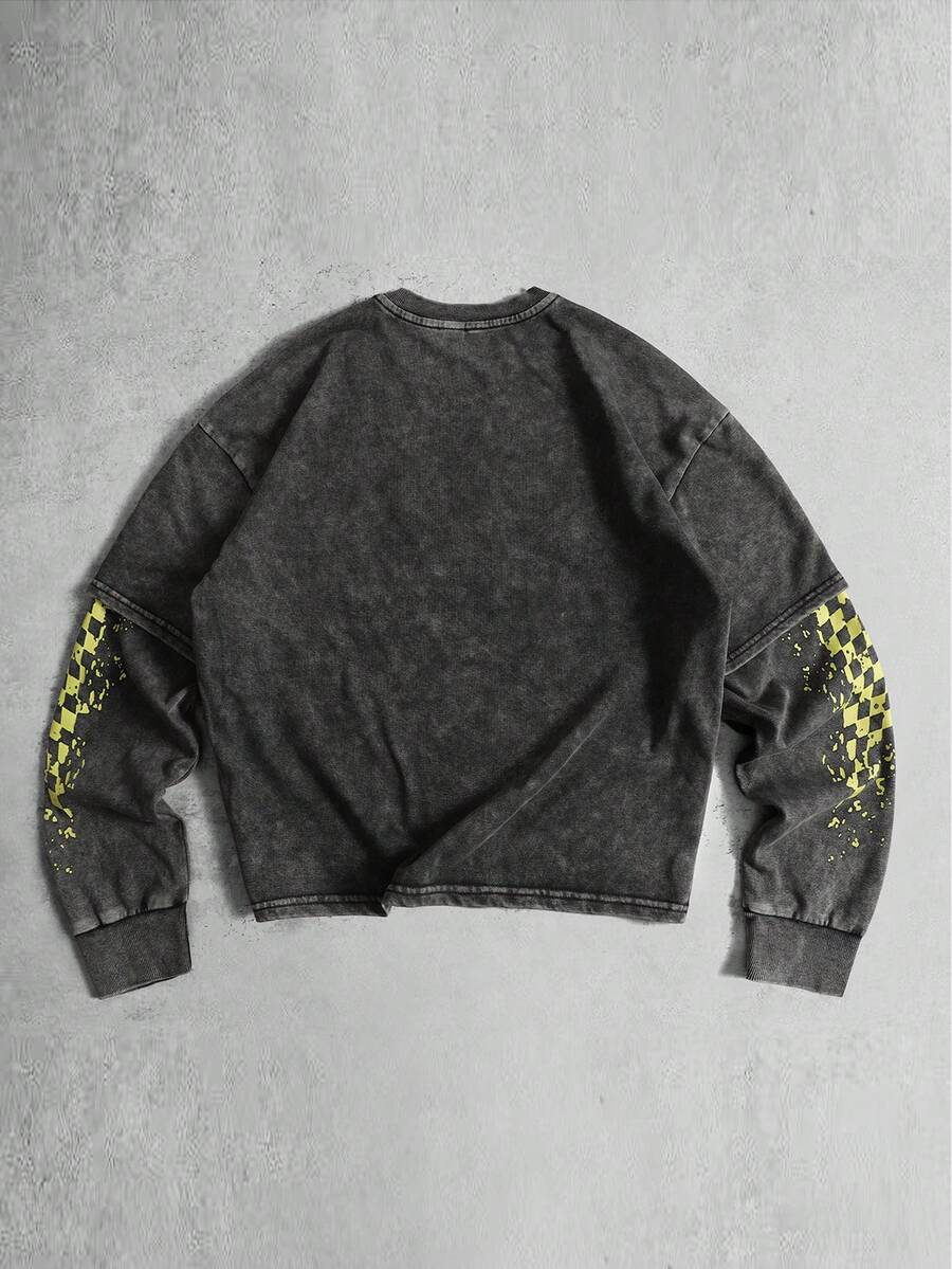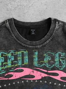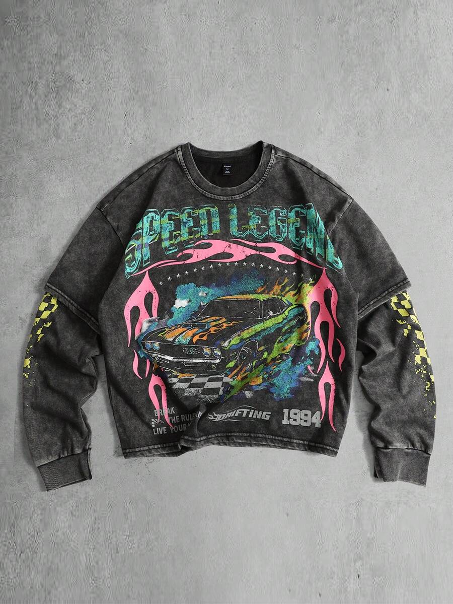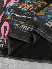 Street Life Men's Letter & Car Graphic Print Washed Long Sleeve T-Shirt