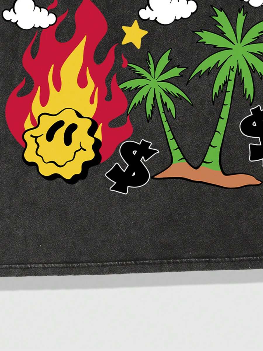 Street Life Men's Letter & Palm Tree Printed Washed Waffle Knit Tank Top, Vacation