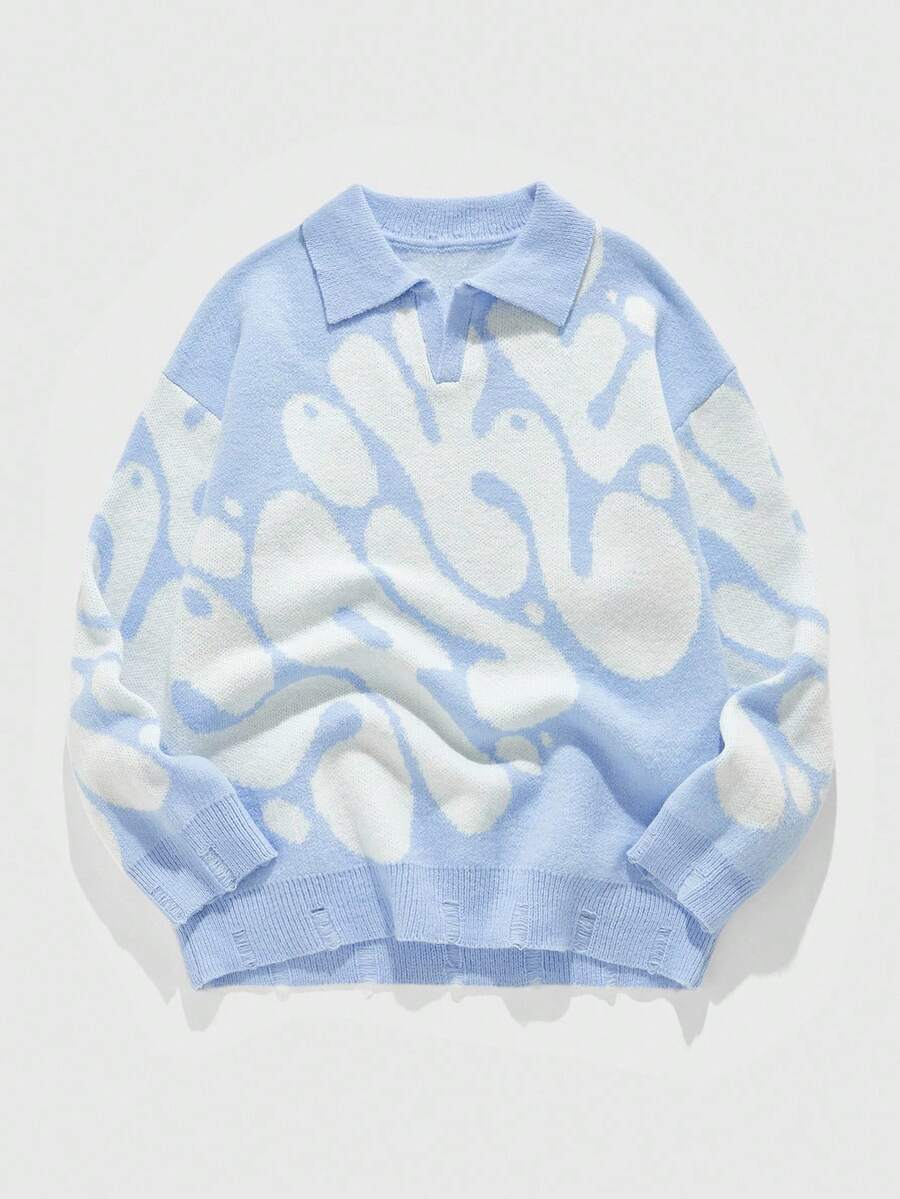 Street Life Men's Letter Pattern Long Sleeve Casual Loose Knit Sweater, Autumn/Winter