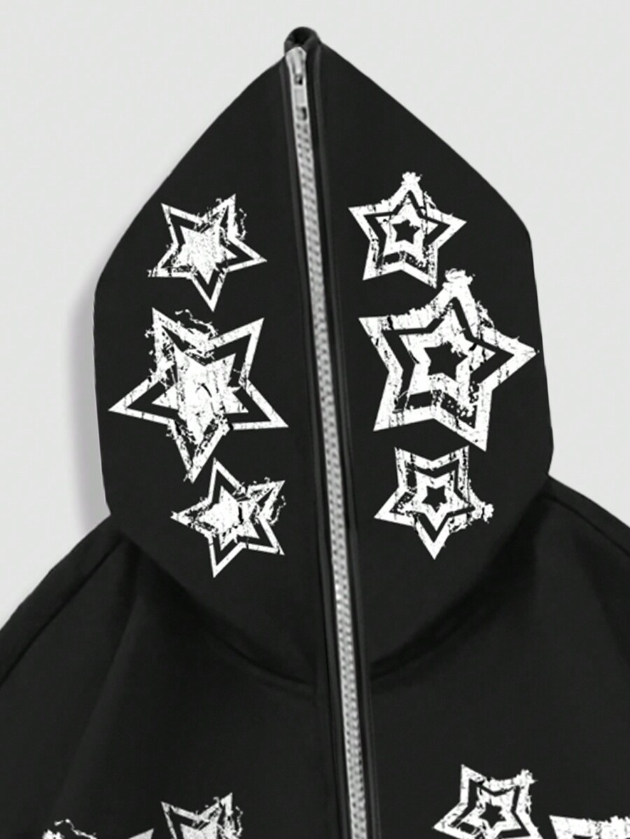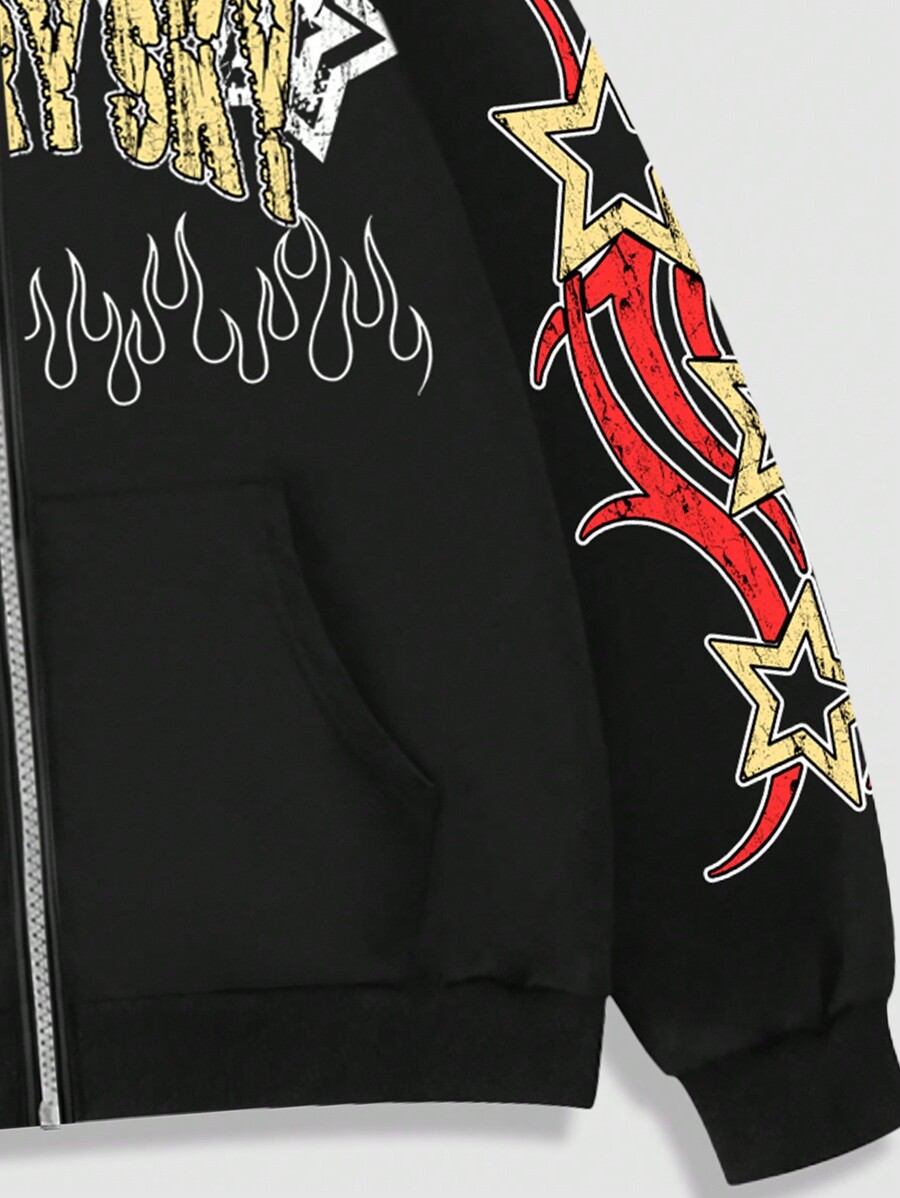 Street Life Men's Letter & Pentagram Print Hooded Zip-Up Sweatshirt Sweatshirt