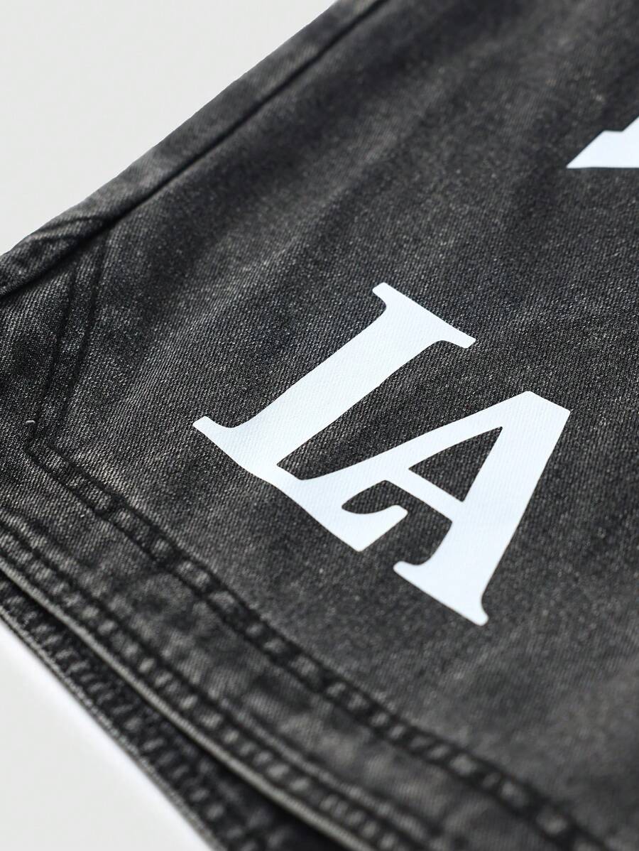 Street Life Men's Letter Printed Denim Shorts, Suitable For Daily Wear In Spring And Summer