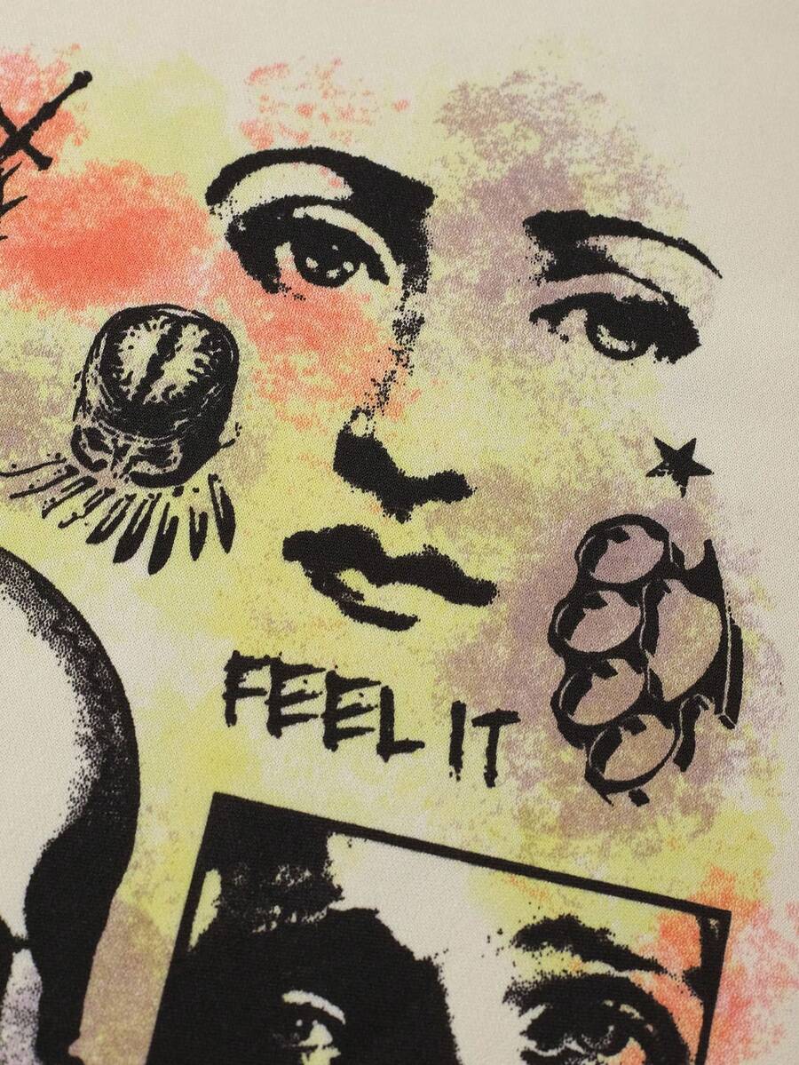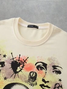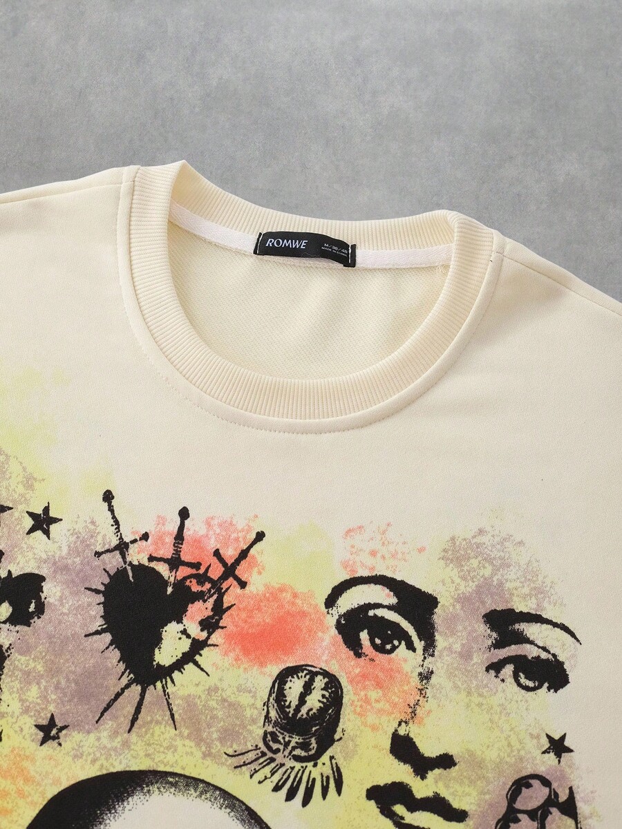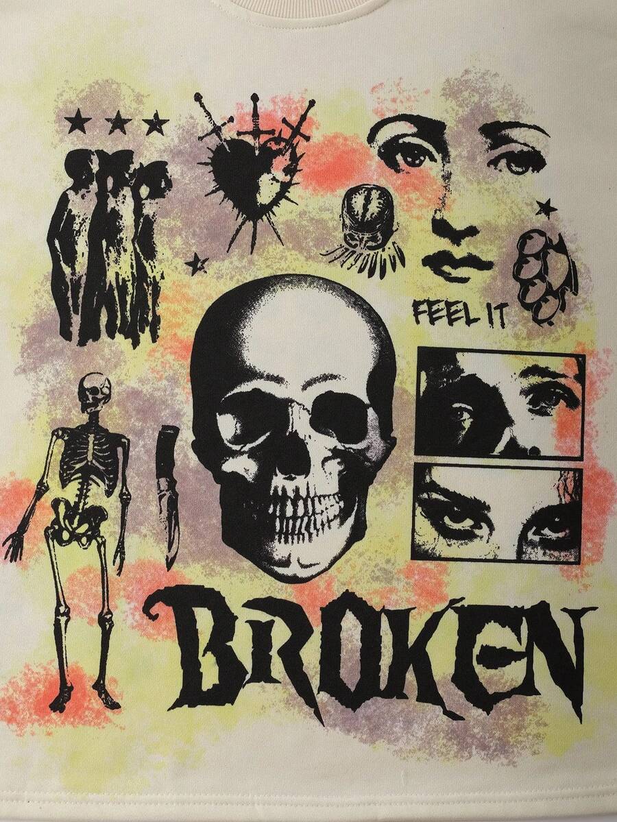 Street Life Men's Letter & Skull Print Crew Neck Loose Casual Long Sleeve T-Shirt, Fall