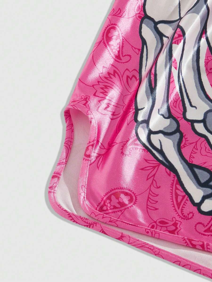 Street Life Men's Letter & Skull Print Elastic Waist Casual Basketball Shorts