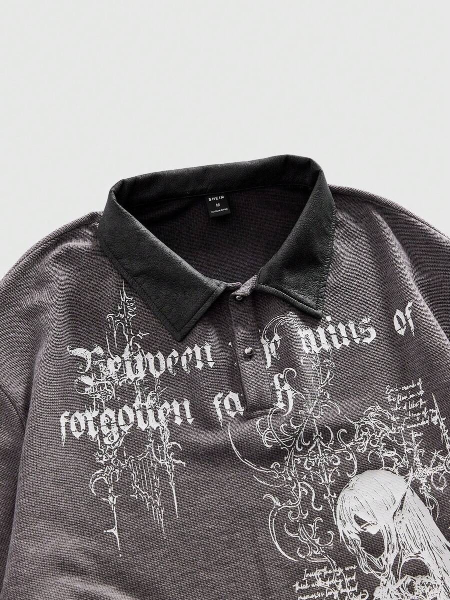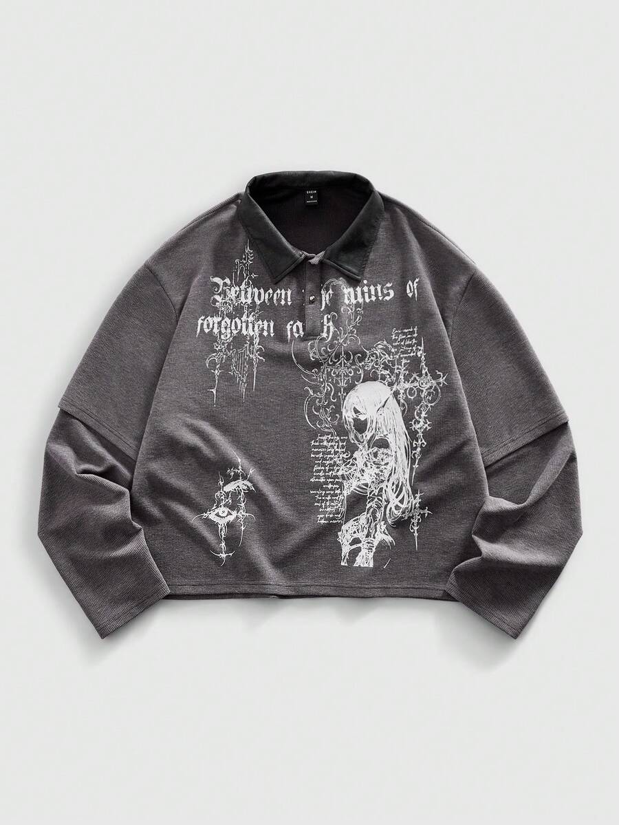 Street Life Men's Long Sleeve Mock Neck Anime Graphic T-Shirt