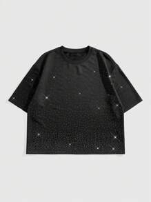 Street Life Men's Loose Batwing Shiny Rhinestone Decor T-Shirt, Rave, Halloween