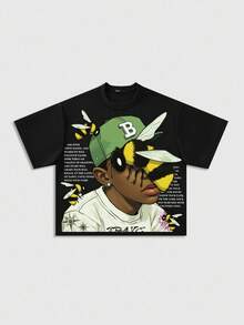 Street Life Men's Loose Dropped Shoulder Short Style Printed T-Shirt