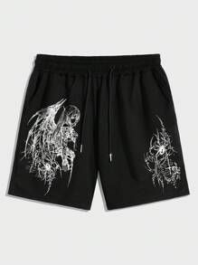 Goth Men's Loose Fit Wide Leg Casual Printed Drawstring Sports Shorts