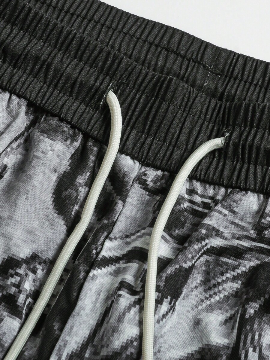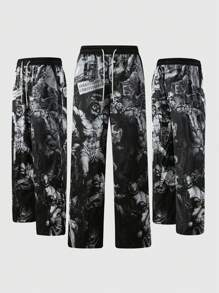 Street Life Men's Loose Straight Religious Graphic Print Pants, Vintage Street Style