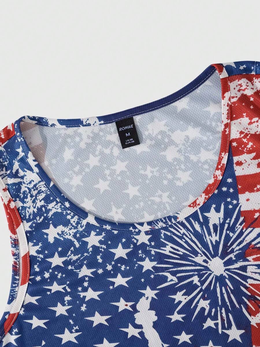 Street Life Men's Loose Street American Flag Printed Round Neck Tank Top, Summer