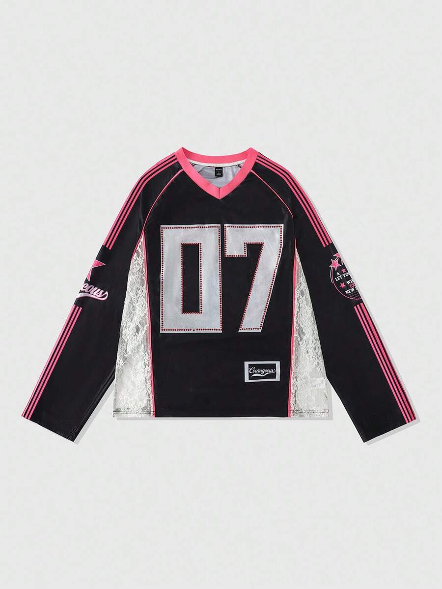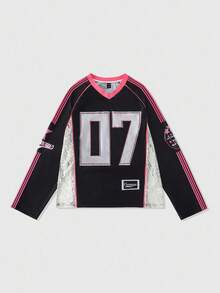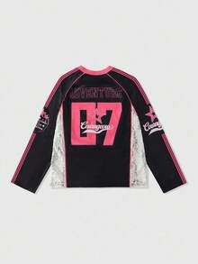 Street Life Men's Numeric Print Long Sleeve Sporty T-Shirt, Loose Fit