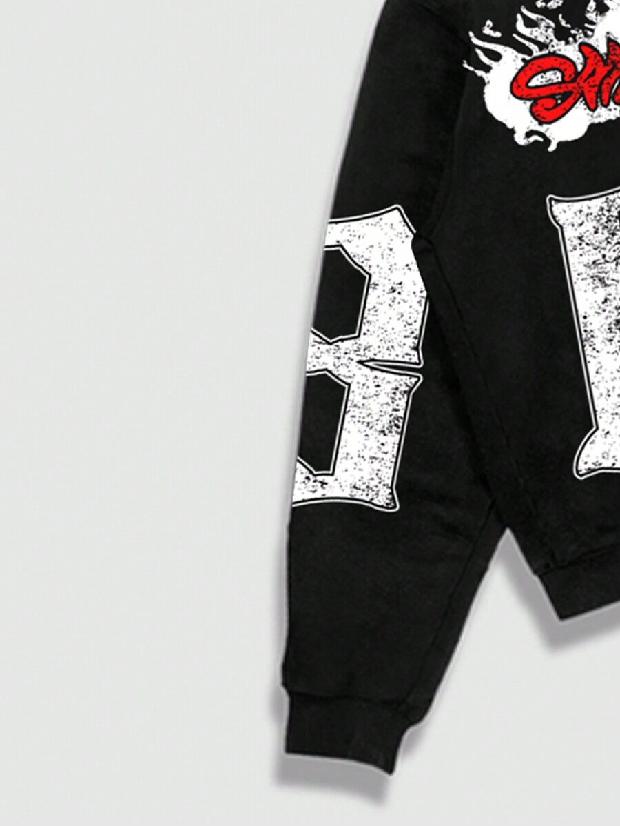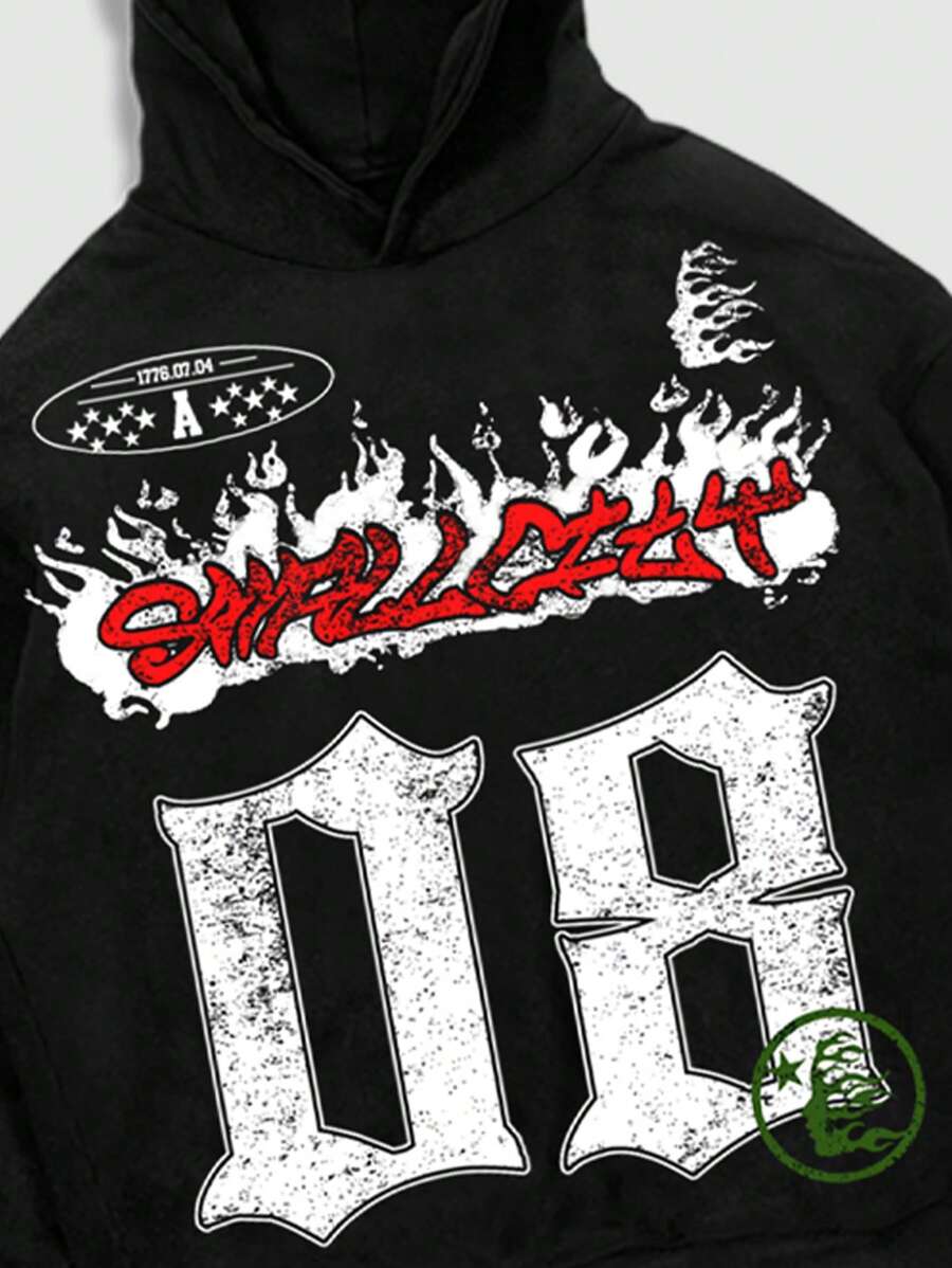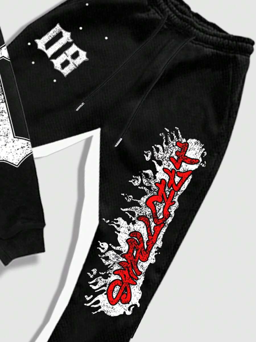 Street Life Men's Numeric Print Simple Hooded Top And Long Pants Set