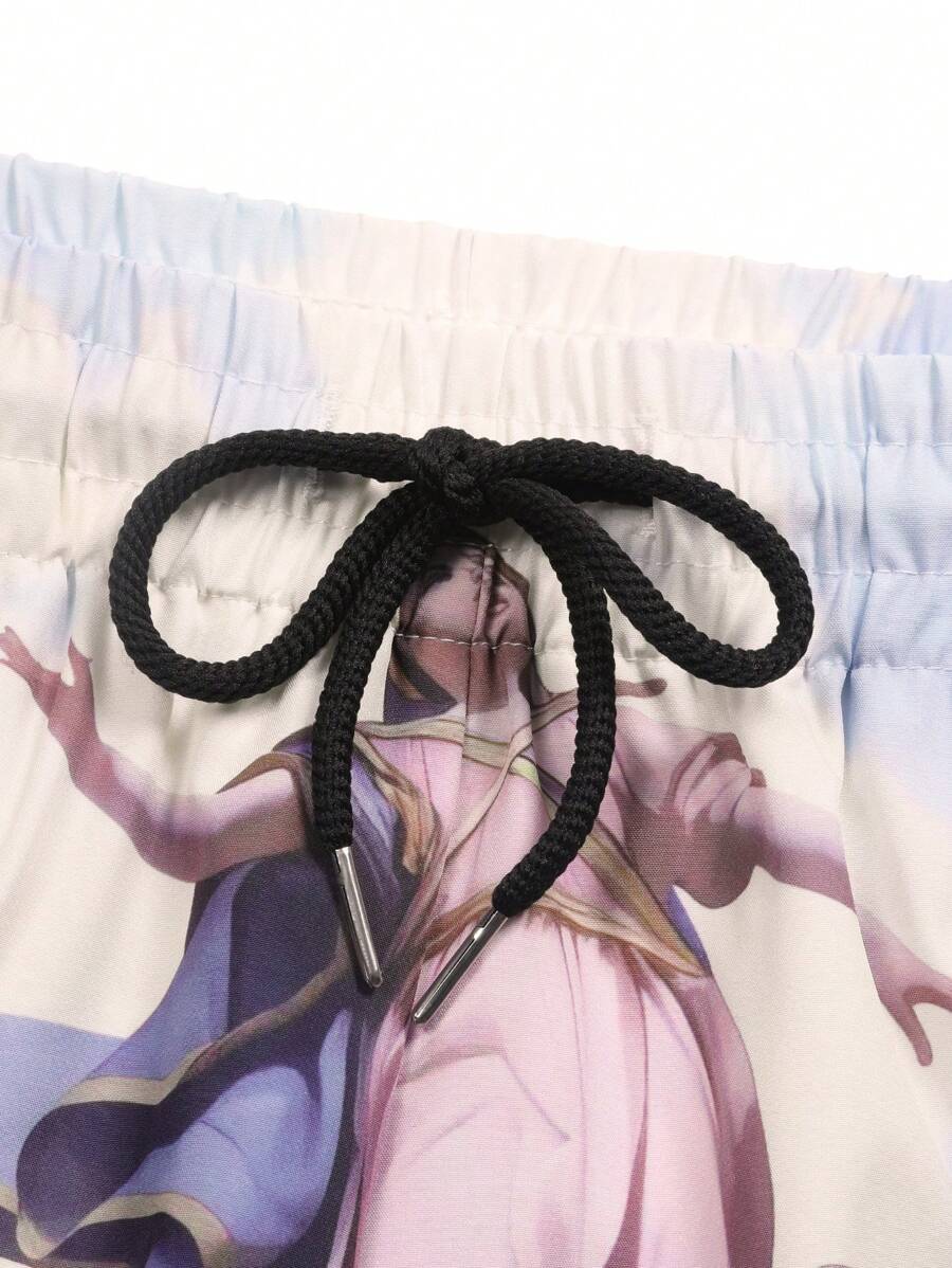 Street Life Men's Oil Painting Print Drawstring Waist Summer Shorts
