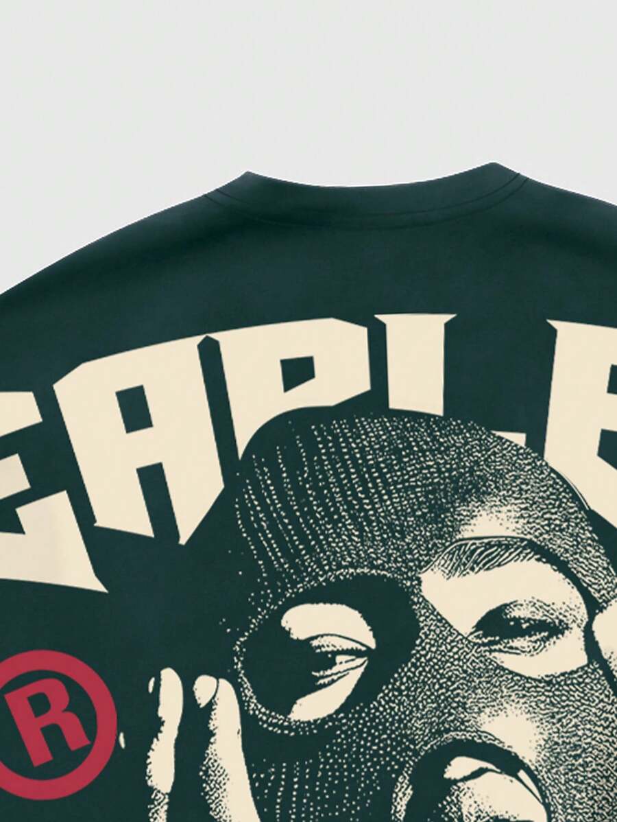 Street Life Men's Oversized Street People Print Short Sleeve T-Shirt, Summer High Street Vintage