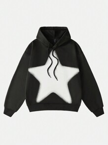 Street Life Men's Pentagram Printed Loose Fit Hoodie, Retro Street Style