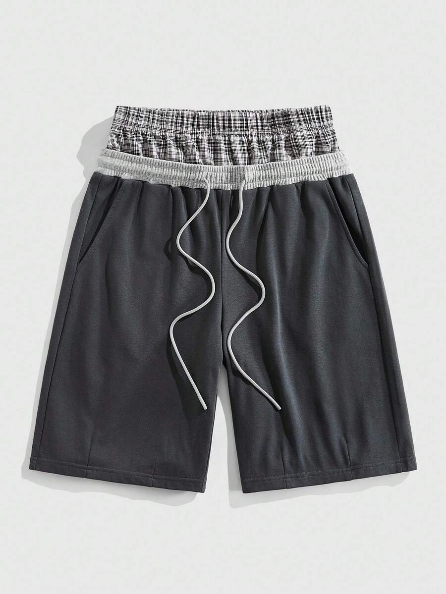Street Life Men's Plaid Drawstring Design Double Waistband Pocket Casual Shorts