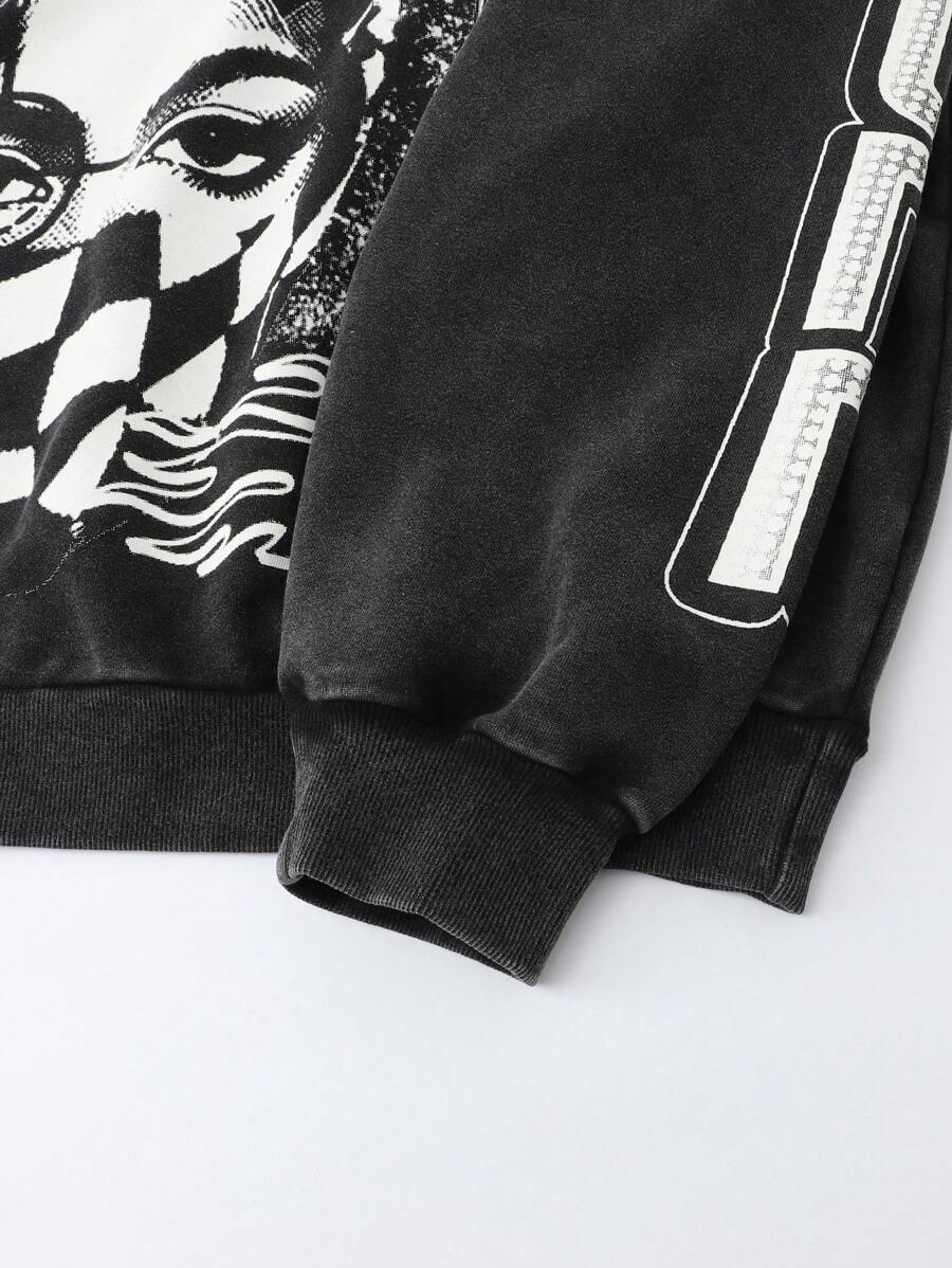 Street Life Men's Portrait Printed Washed Loose Short Hoodie, Street Vintage Style