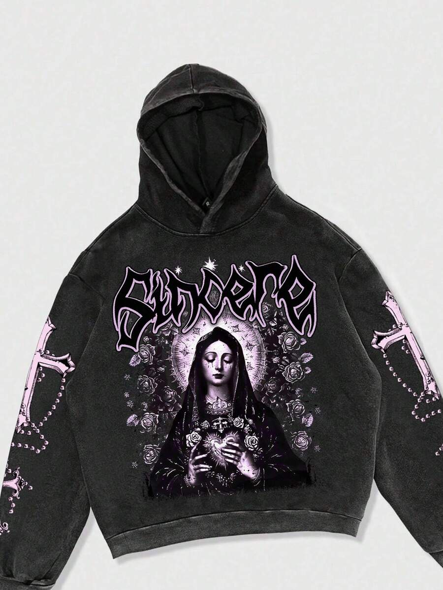 Street Life Men's Printed Washed Loose Cropped Hoodie
