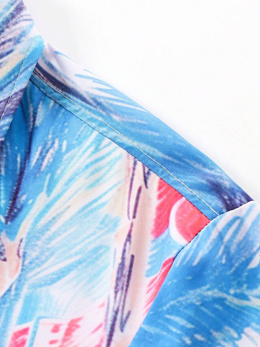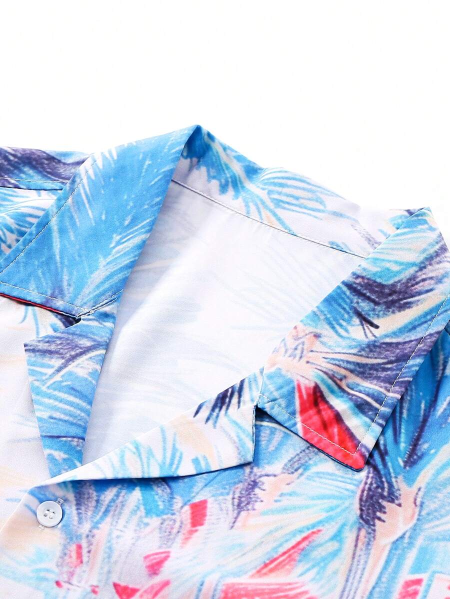 Street Life Men's Racing & Coconut Tree Printed Short Sleeve Shirt, Suitable For Daily Wear In Spring And Summer