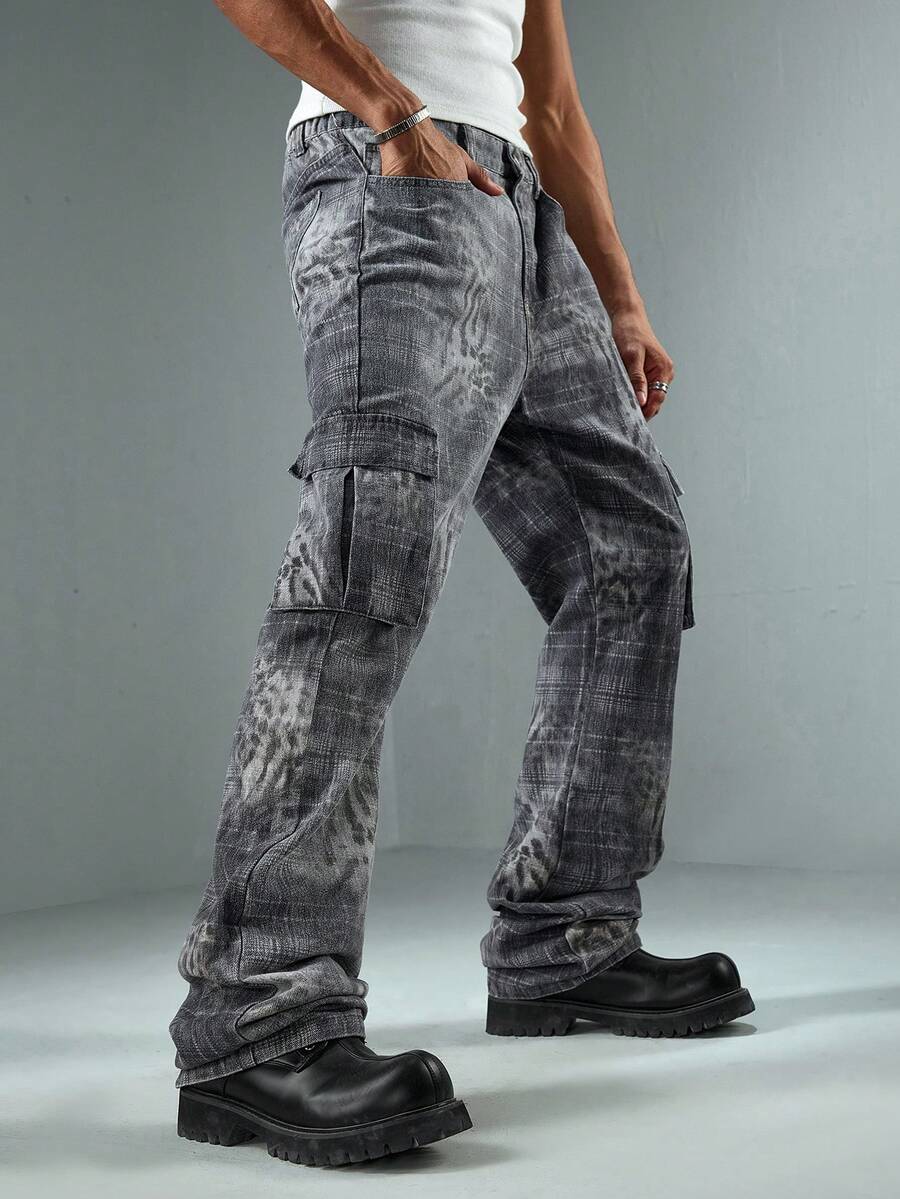Street Life Men's Retro Leopard Print Cargo Denim Jeans