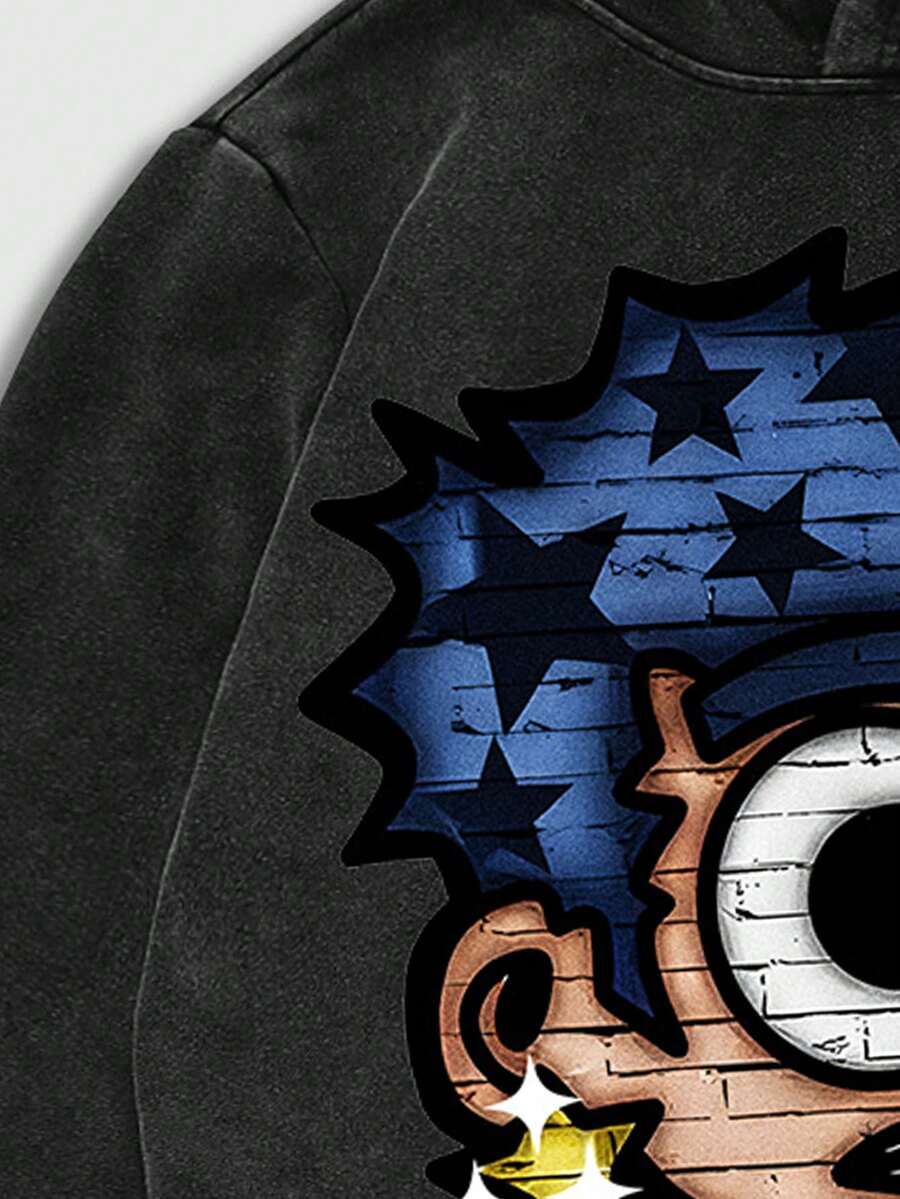 Street Life Men's Retro Scribble Portrait Print Hoodie, High Street