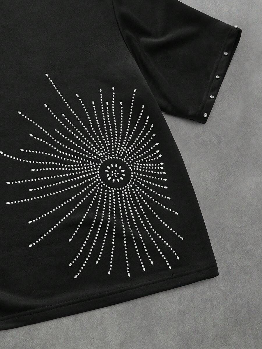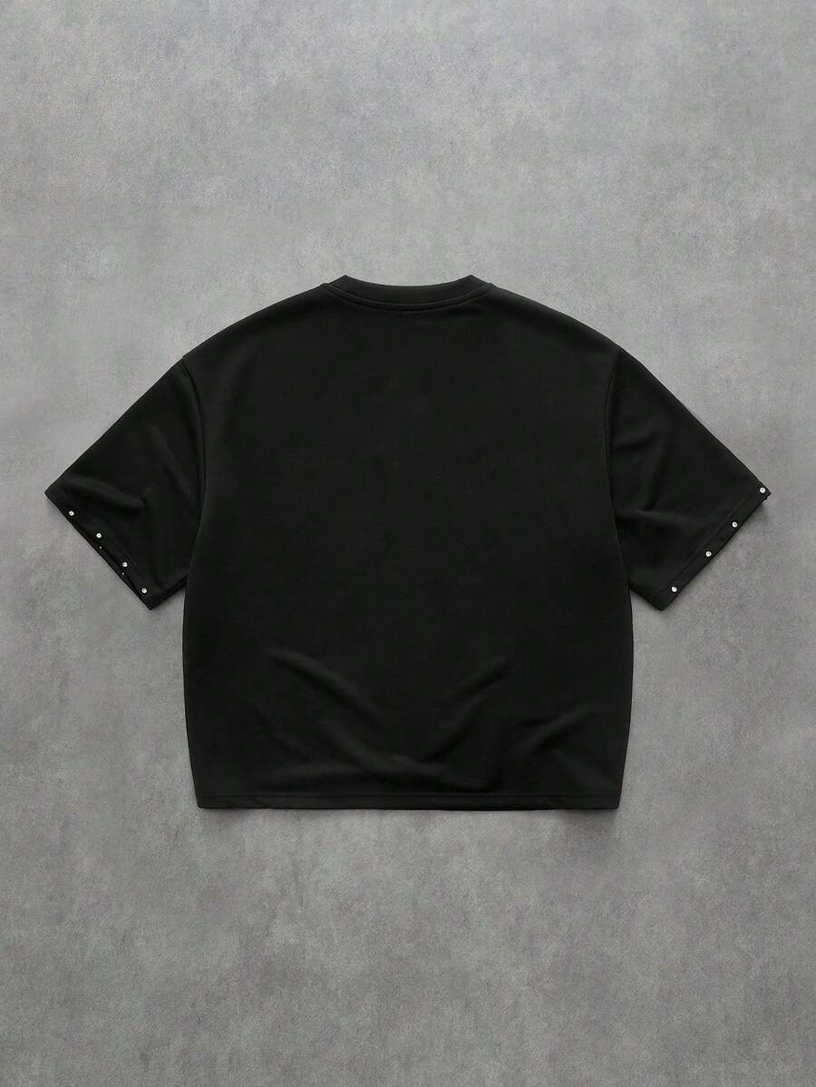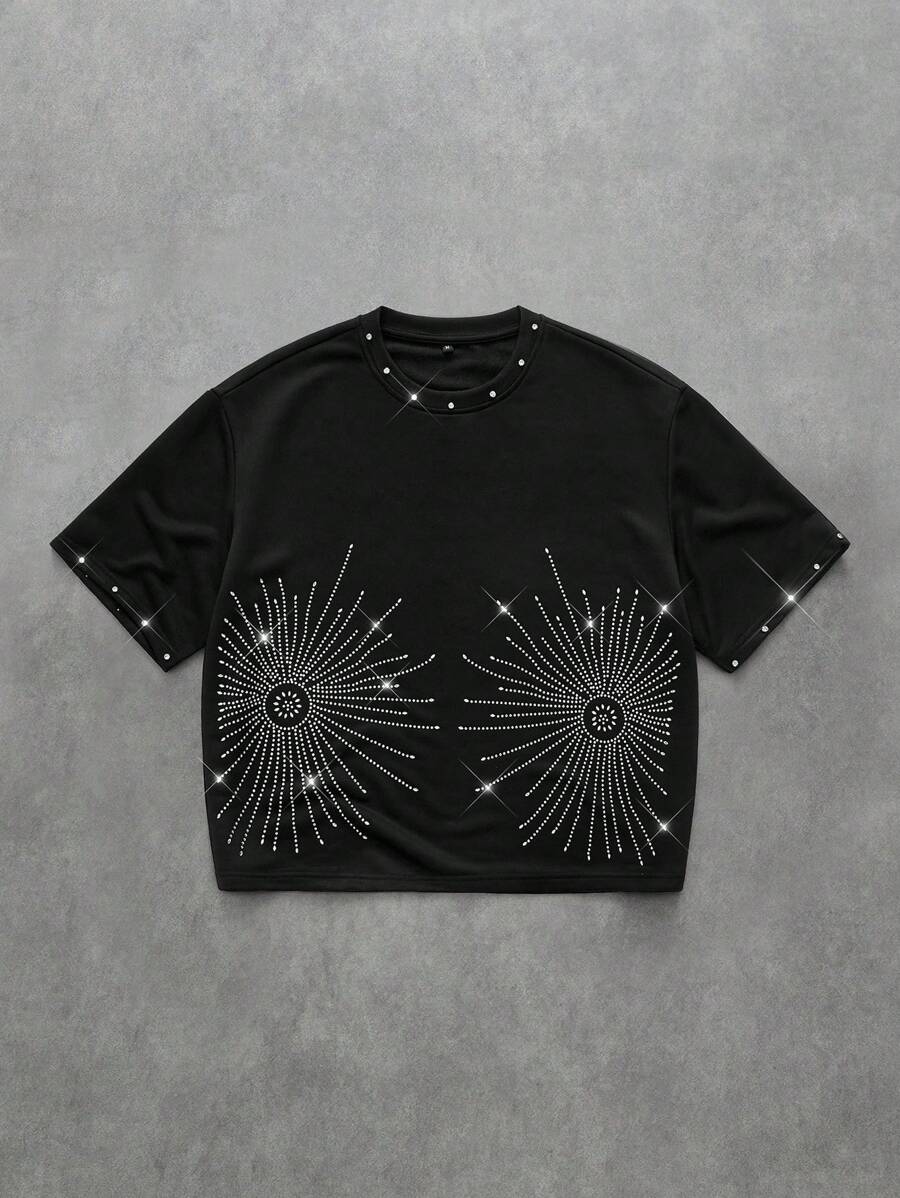 Street Life Men's Rhinestone Embellished Short Sleeve T-Shirt, Loose Dropped Shoulder Design