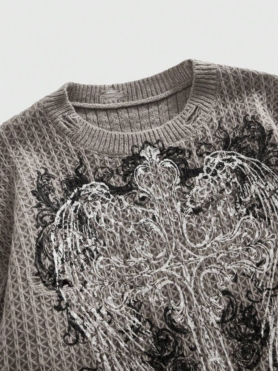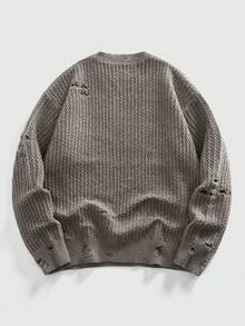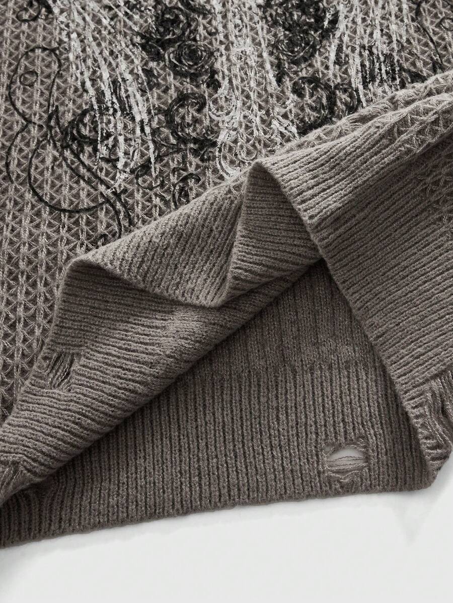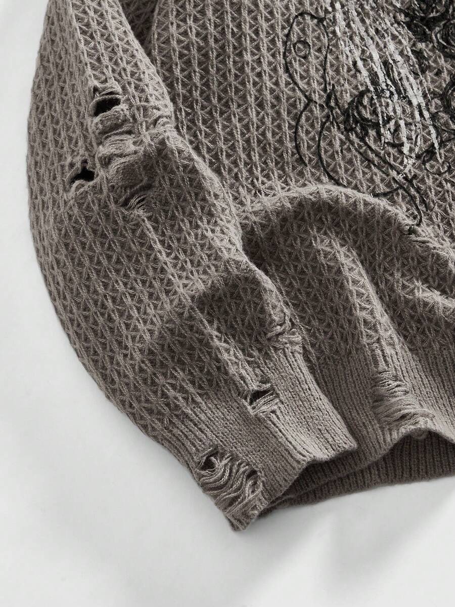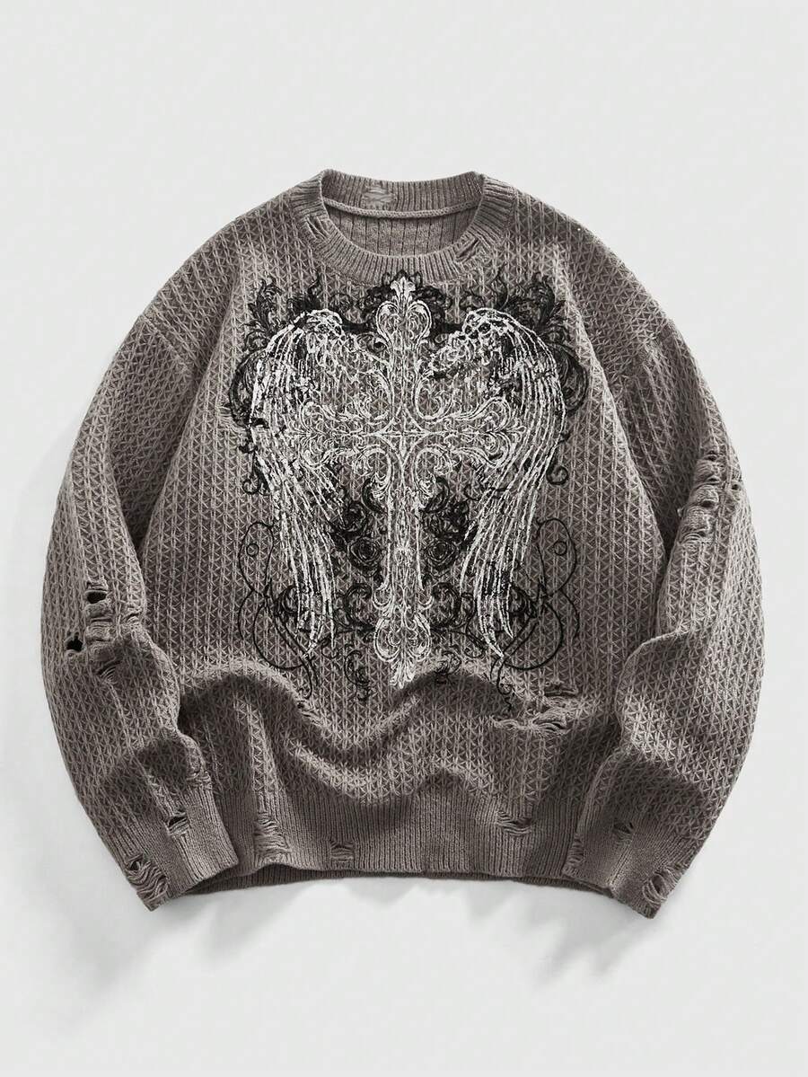 Street Life Men's Ripped Cross Print Crew Neck Long Sleeve Knit Sweater