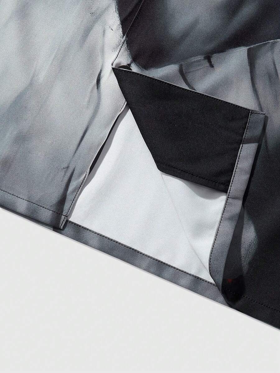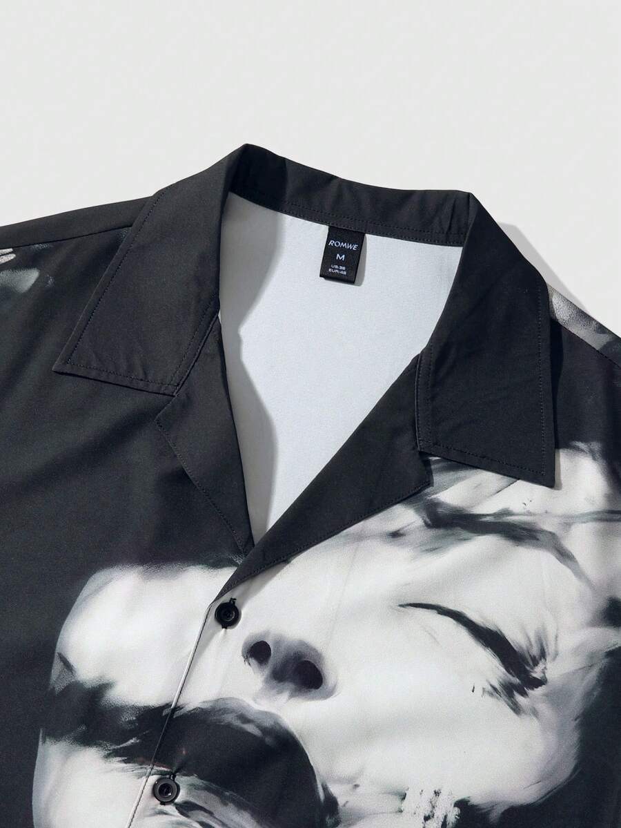 Street Life Men's Short Sleeve Shirt With Blurred Portrait Print, Suitable For Spring And Summer