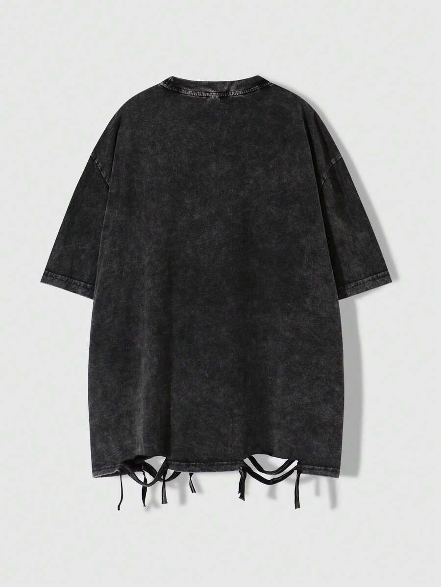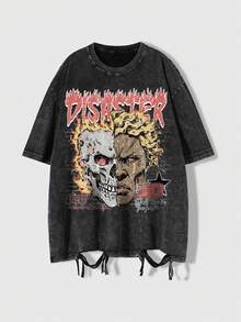 Street Life Men's Short Sleeve T-Shirt With Distressed Skull & Flame Print