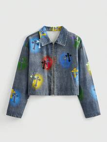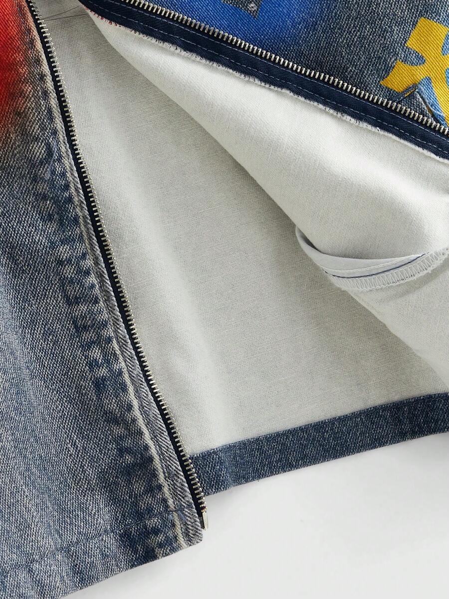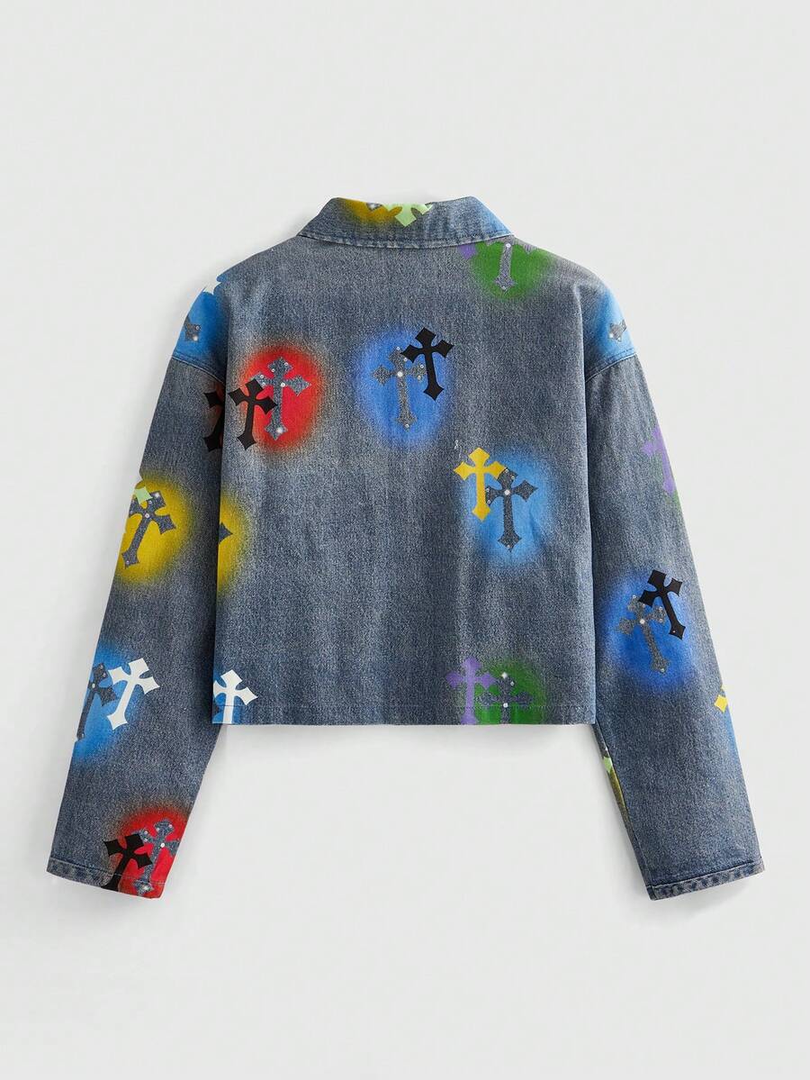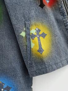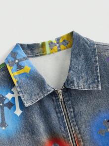 Street Life Men's Short Zip-Up Denim Jacket With Cross Pattern, Fashion & Versatile