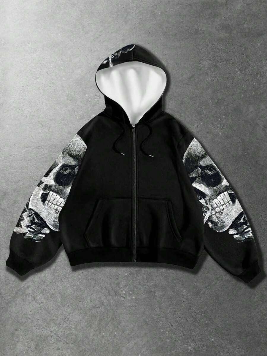 Street Life Men's Skull Head Digital Print Fleece Hoodie Sweatshirt
