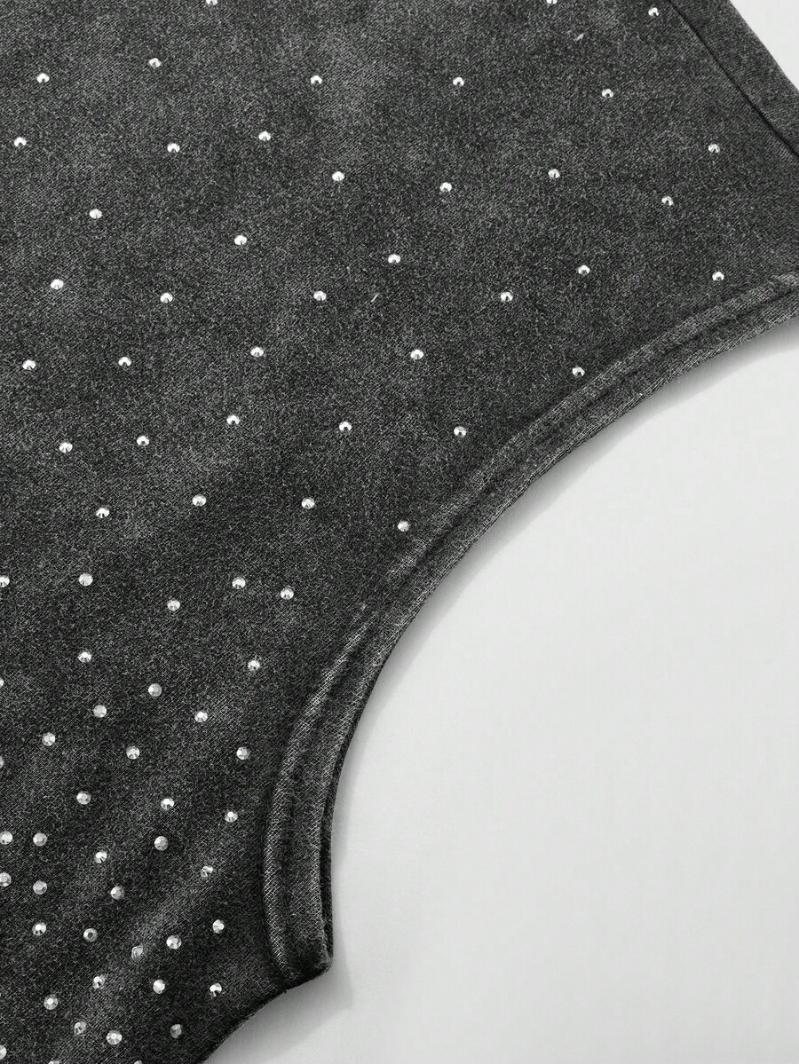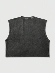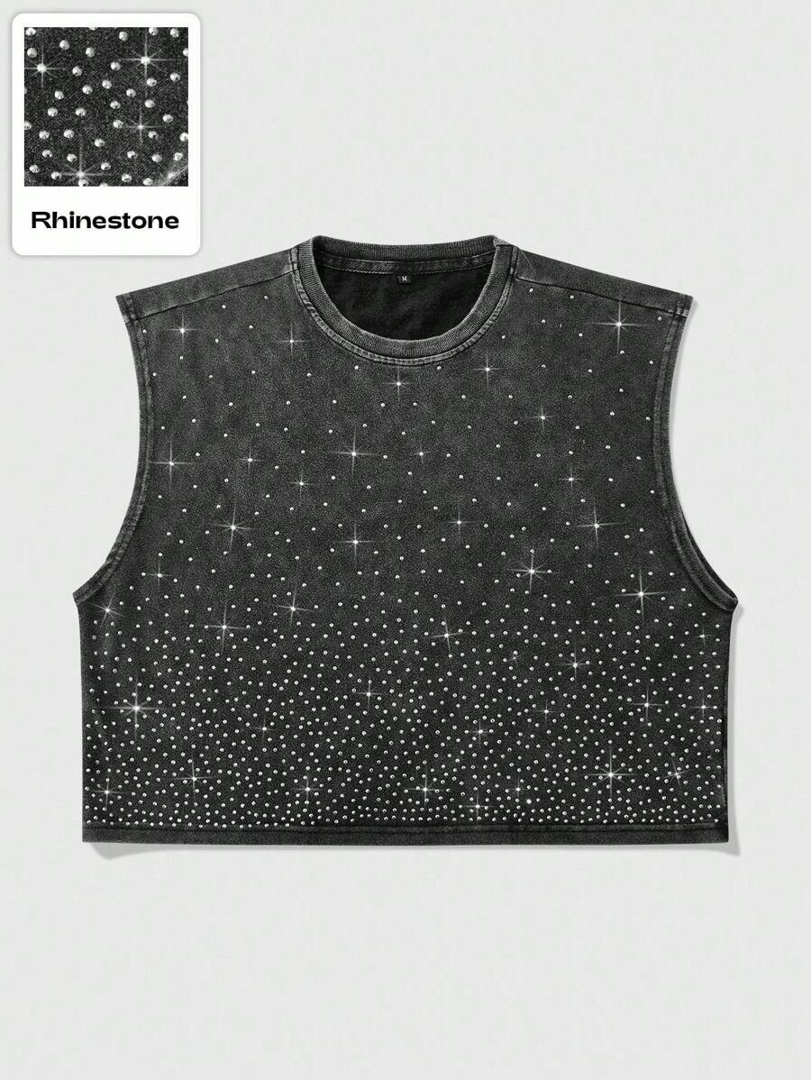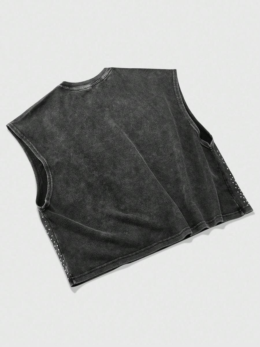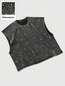 Street Life Men's Sleeveless Vest, Street American Style Daily Rhinestone Effect Short Washed Snow Flake Vest, 2000s Style