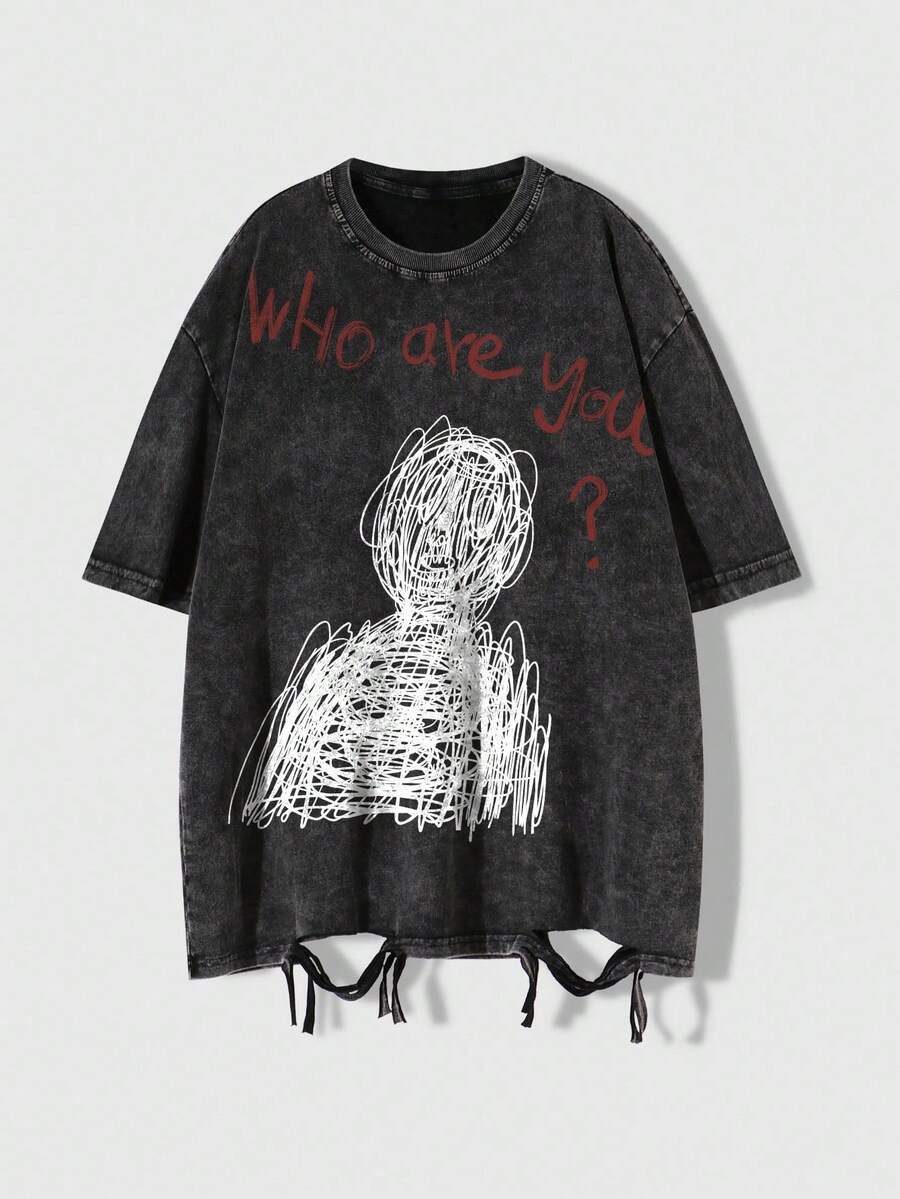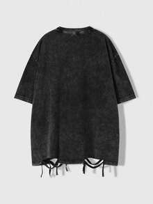 Street Life Men's Slogan Print Distressed Round Neck Loose Fit T-Shirt