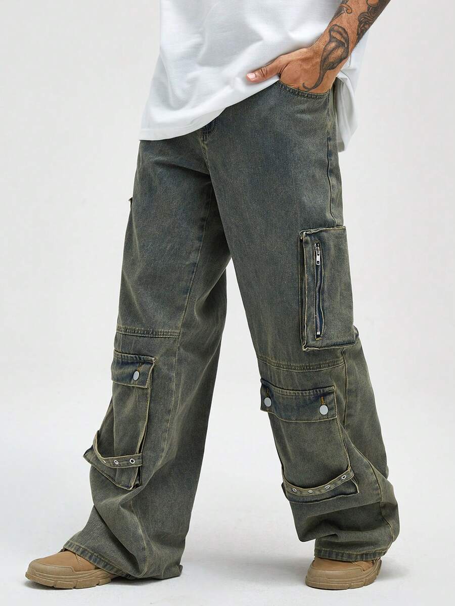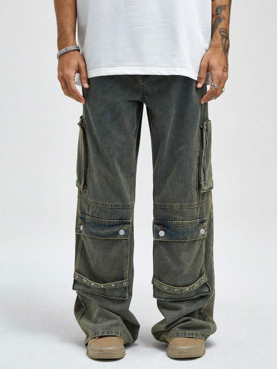 Street Life Men's Solid Color Casual Cargo Straight Leg Jeans