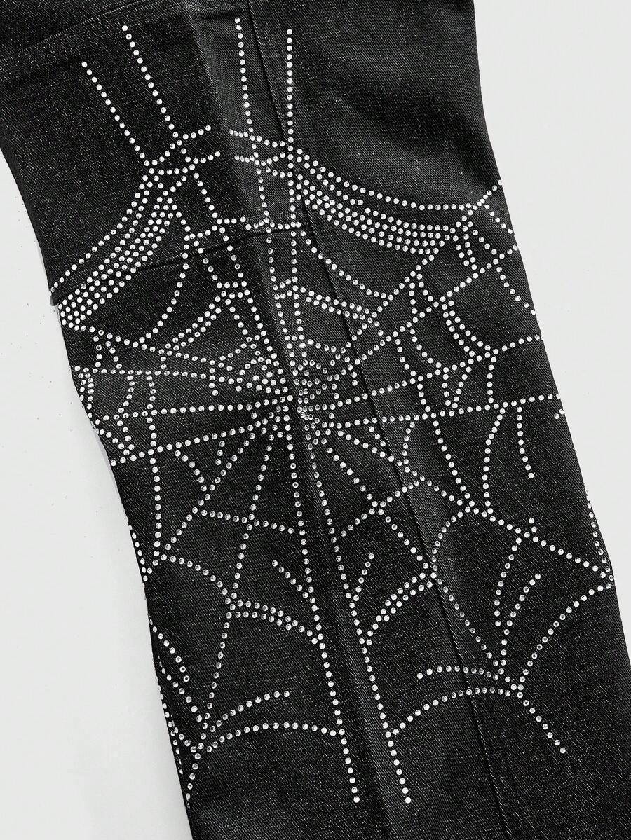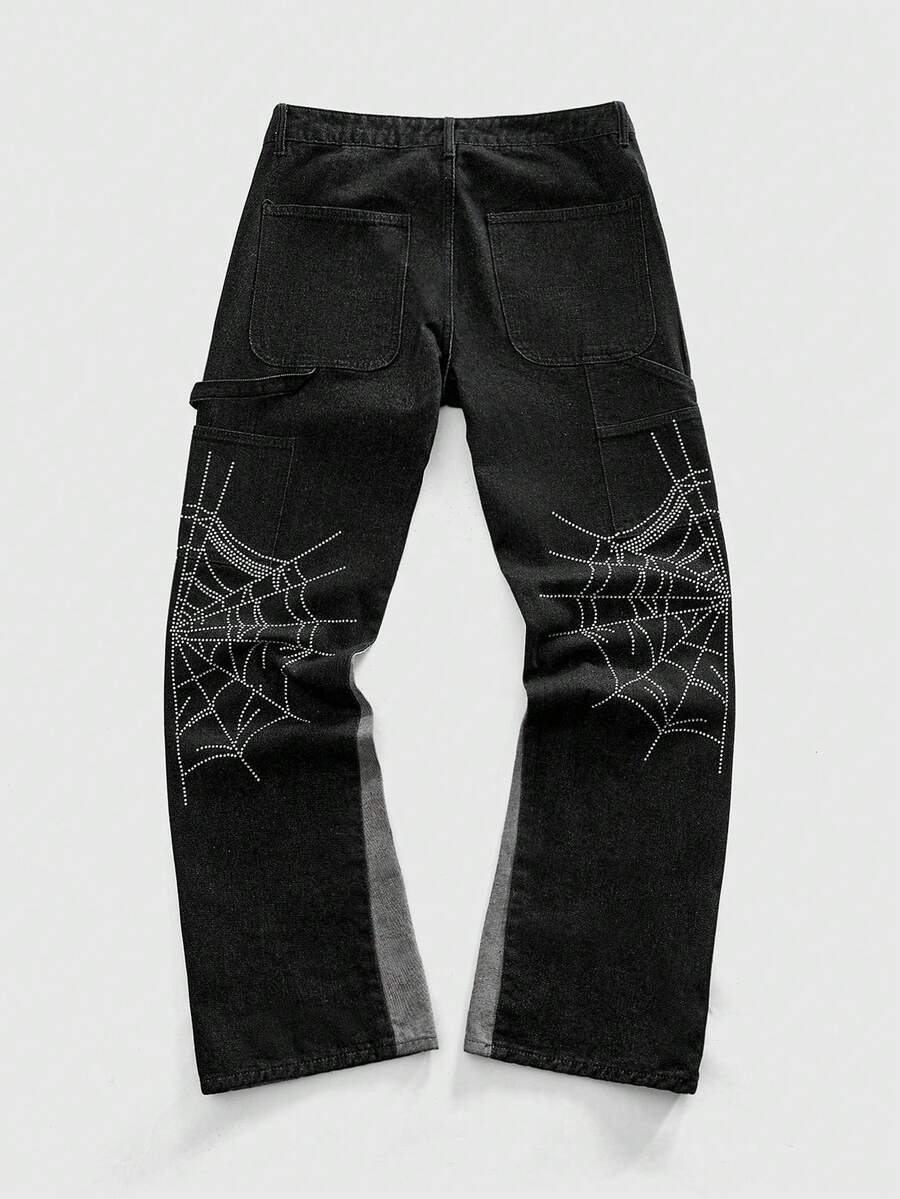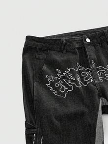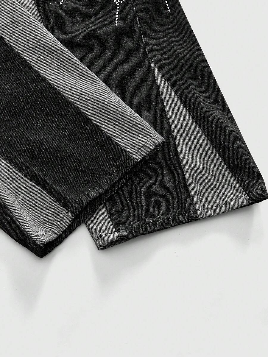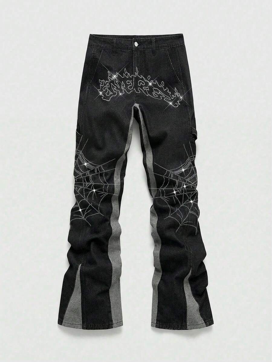 Street Life Men's Sparkling Diamond Pattern Patchwork Contrast Color Layered Flare Jeans