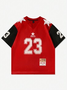 Street Life Men's Sports Contrast Color Jersey T-Shirt, Comfortable Shiny Fabric, Color-Blocked Sleeves, Ribbed Collar, School
