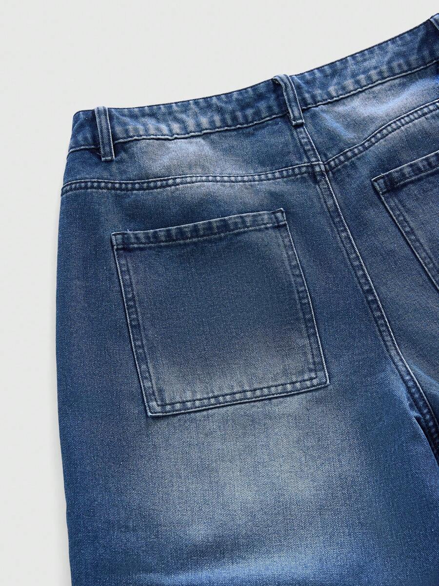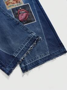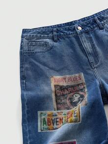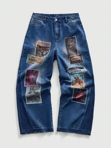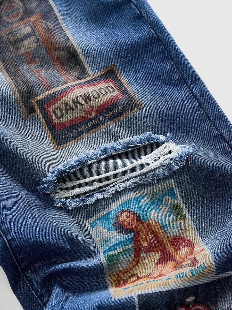Street Life Men's Straight Leg Figure Print Distressed Wide Leg Jeans