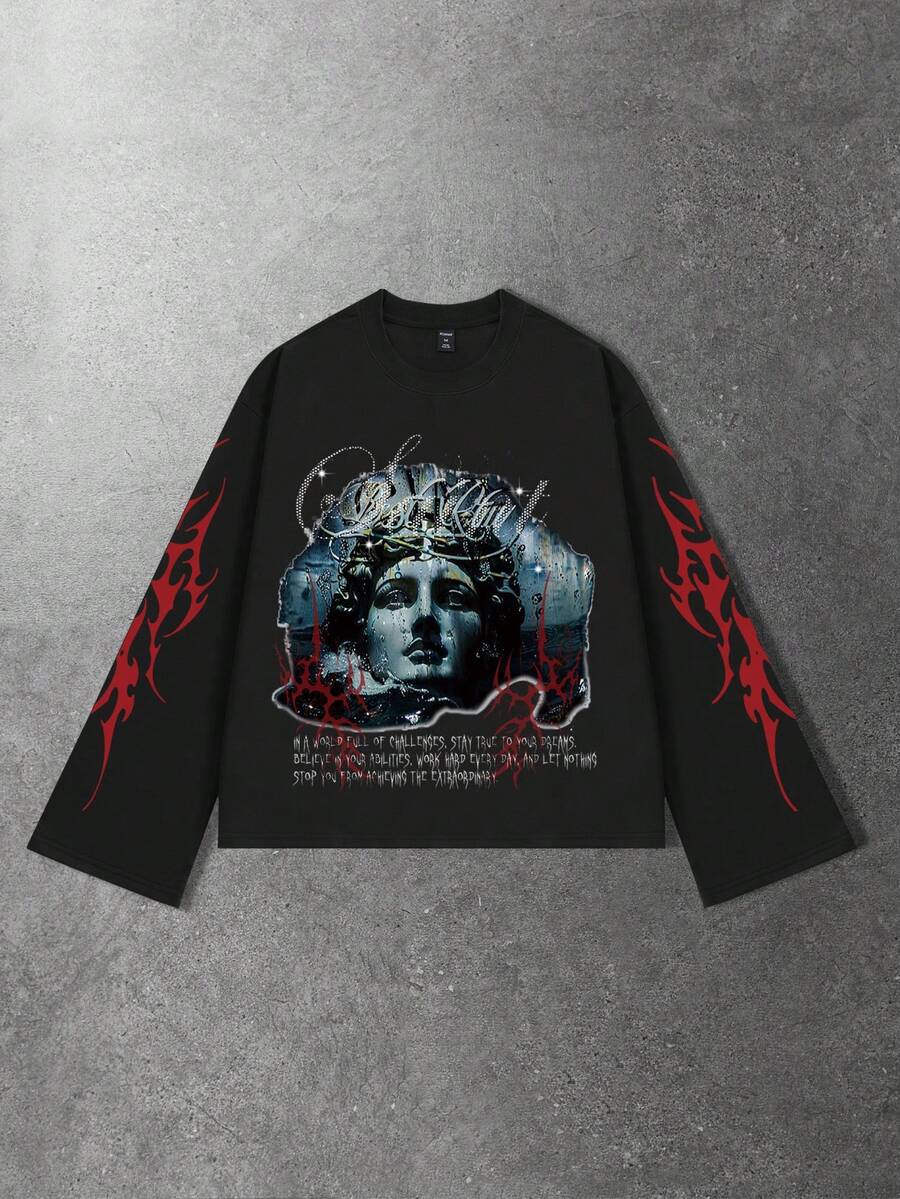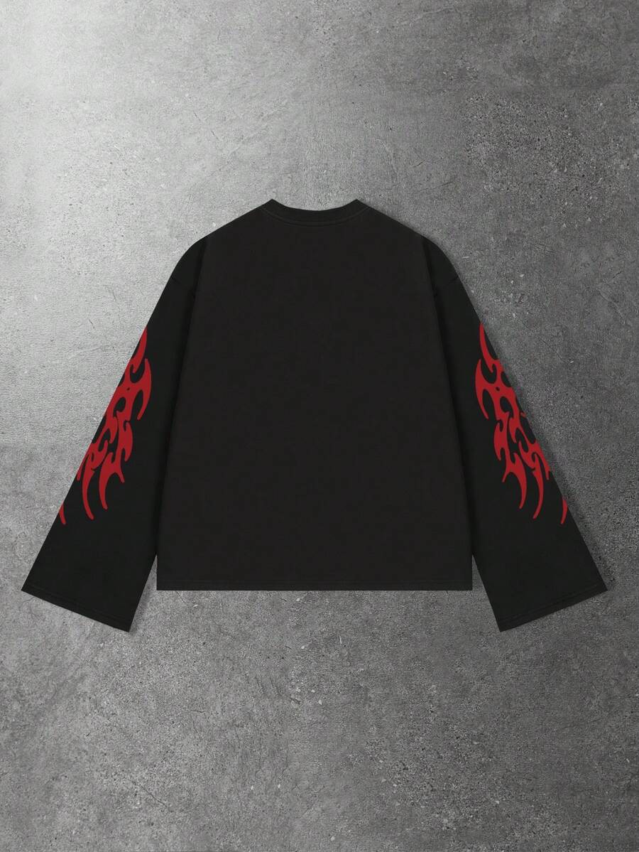 Street Life Men's Street Dark Figure Print Long Sleeve T-Shirt, Loose Cropped Fit