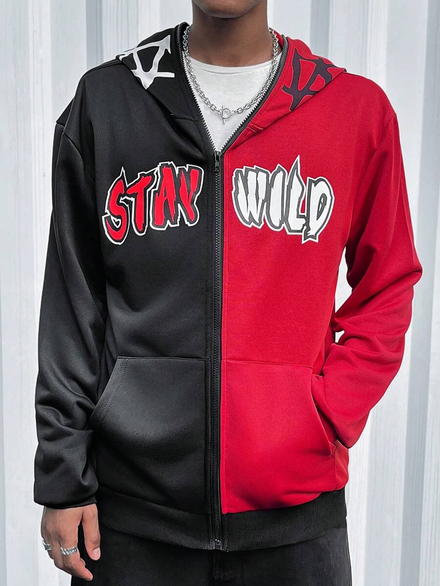 Street Life Men's Street Fashion Smiling Face Colorblock Zip-Up Hoodie