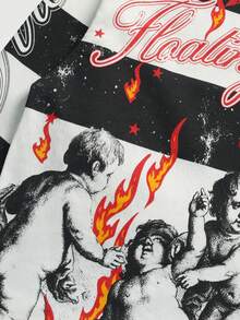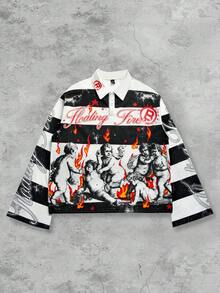 Street Life Men's Street Graphic Print Striped Polo Collar Long Sleeve T-Shirt, Autumn/Winter
