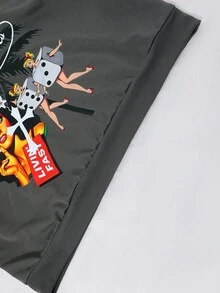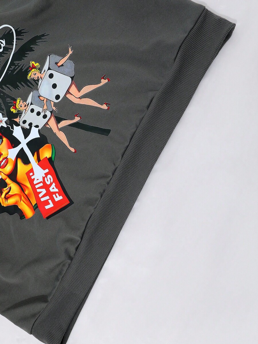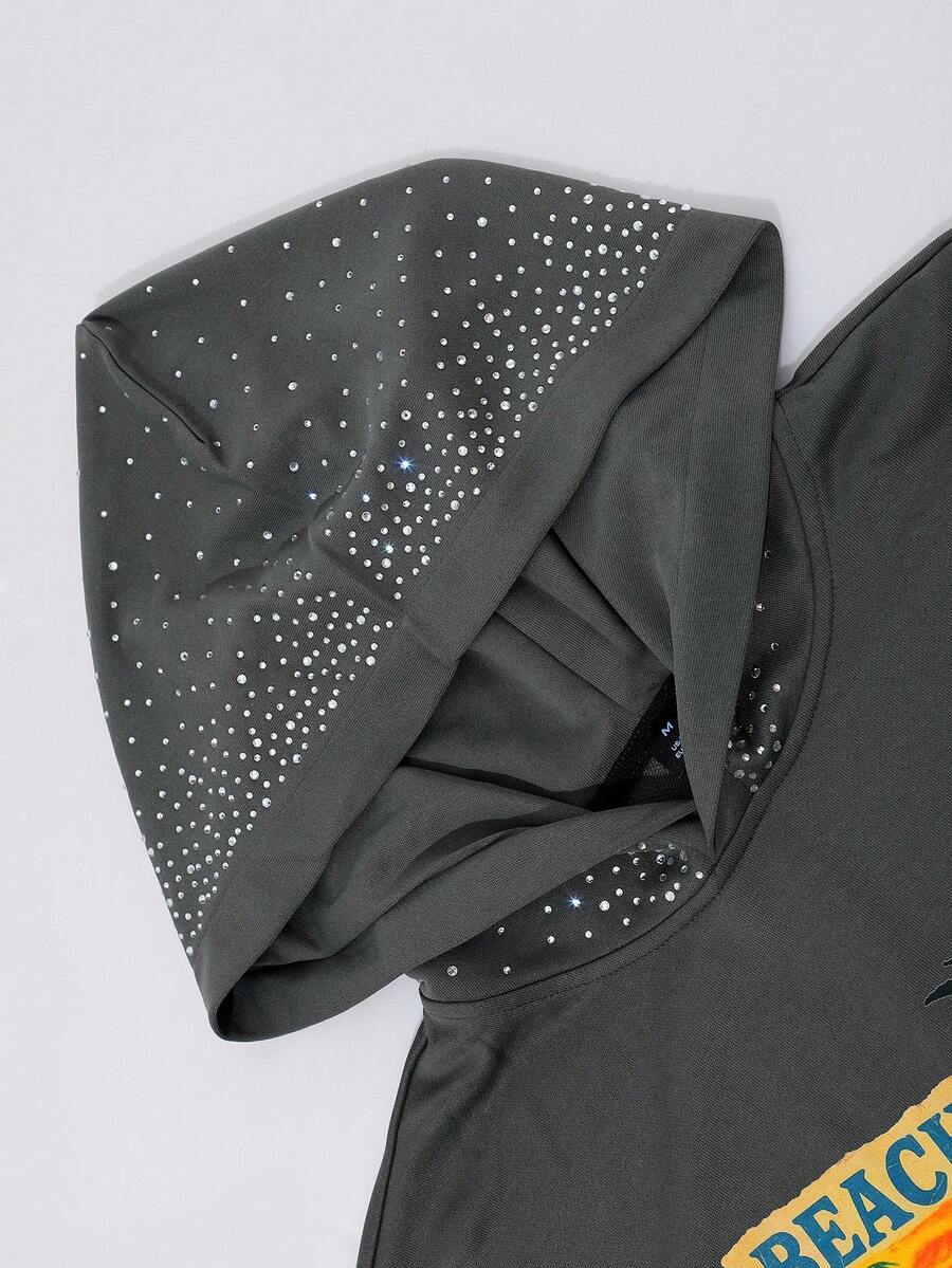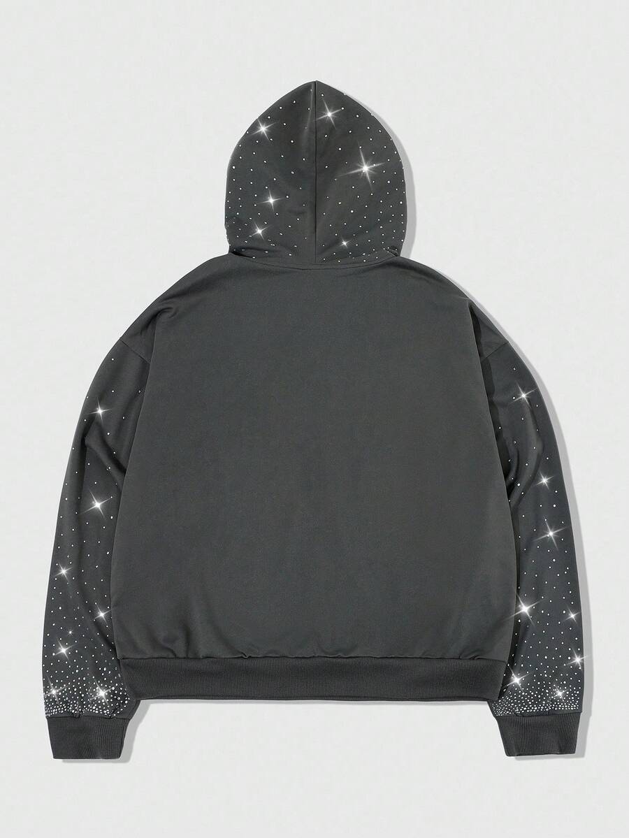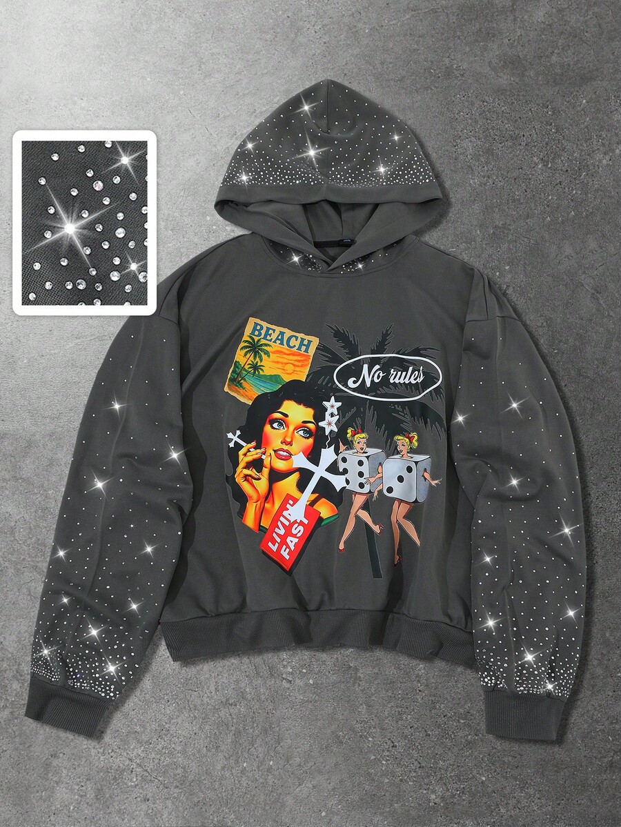 Street Life Men's Street Letter & Figure Graphic Rhinestone Decor Hoodie Sweatshirt, Casual Everyday Wear, Long Sleeve Top