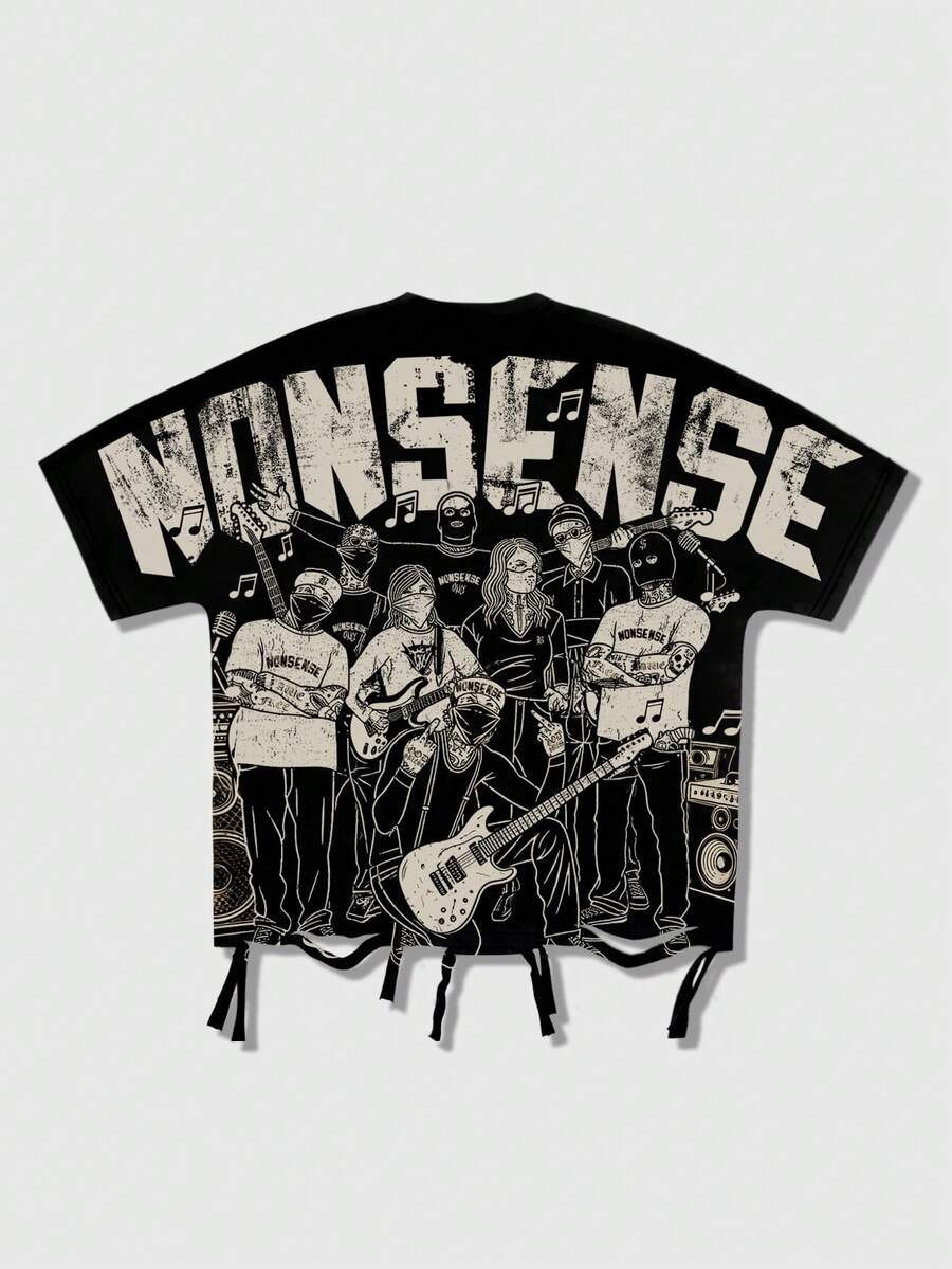 Street Life Men's Street Style Batwing Sleeve Graphic T-Shirt, Suitable For Everyday Wear, Spring/Summer