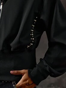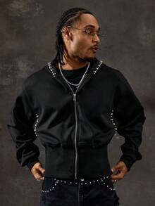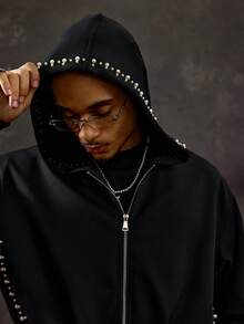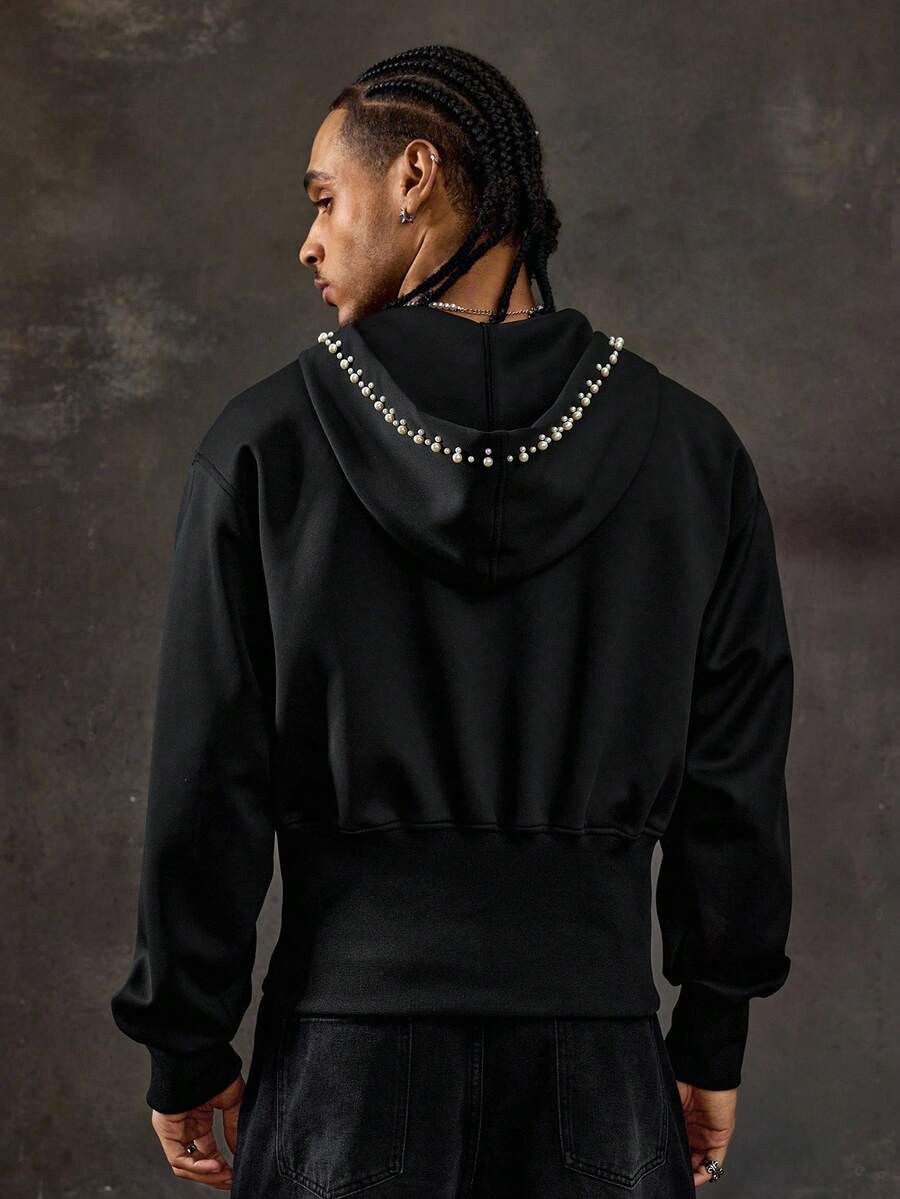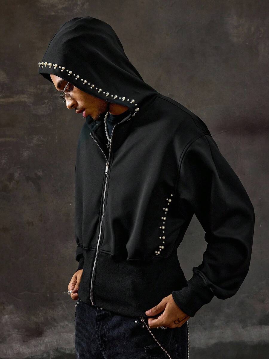 Street Life Men's Streetwear Casual Zip-Up Beaded Embroidery Hoodie, Fall