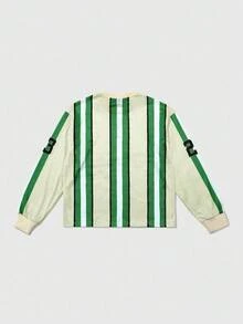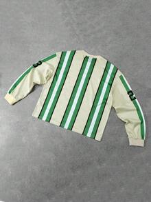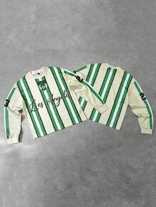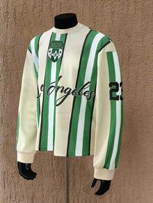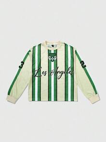 Street Life Men's Striped English Print Long Sleeve T-Shirt, Streetwear, Casual, Sports, Fall