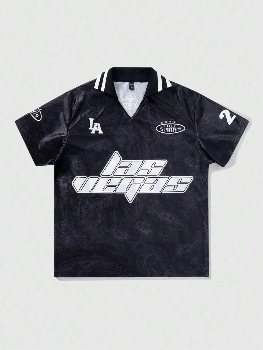 Street Life Men's Summer Letter & Stripe Short Sleeve Casual Jersey Polo Shirt, School
