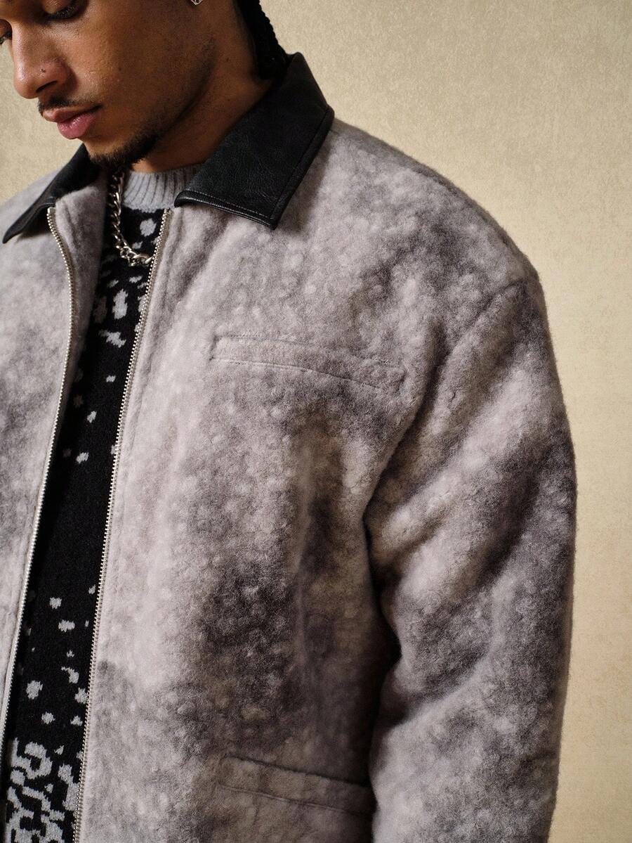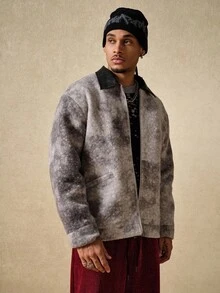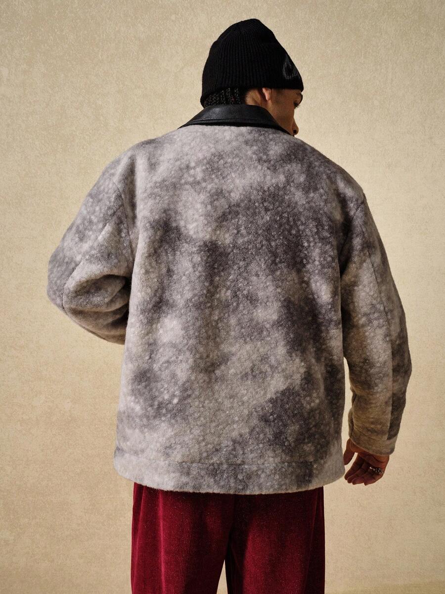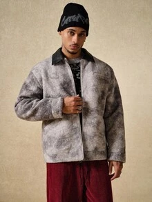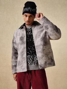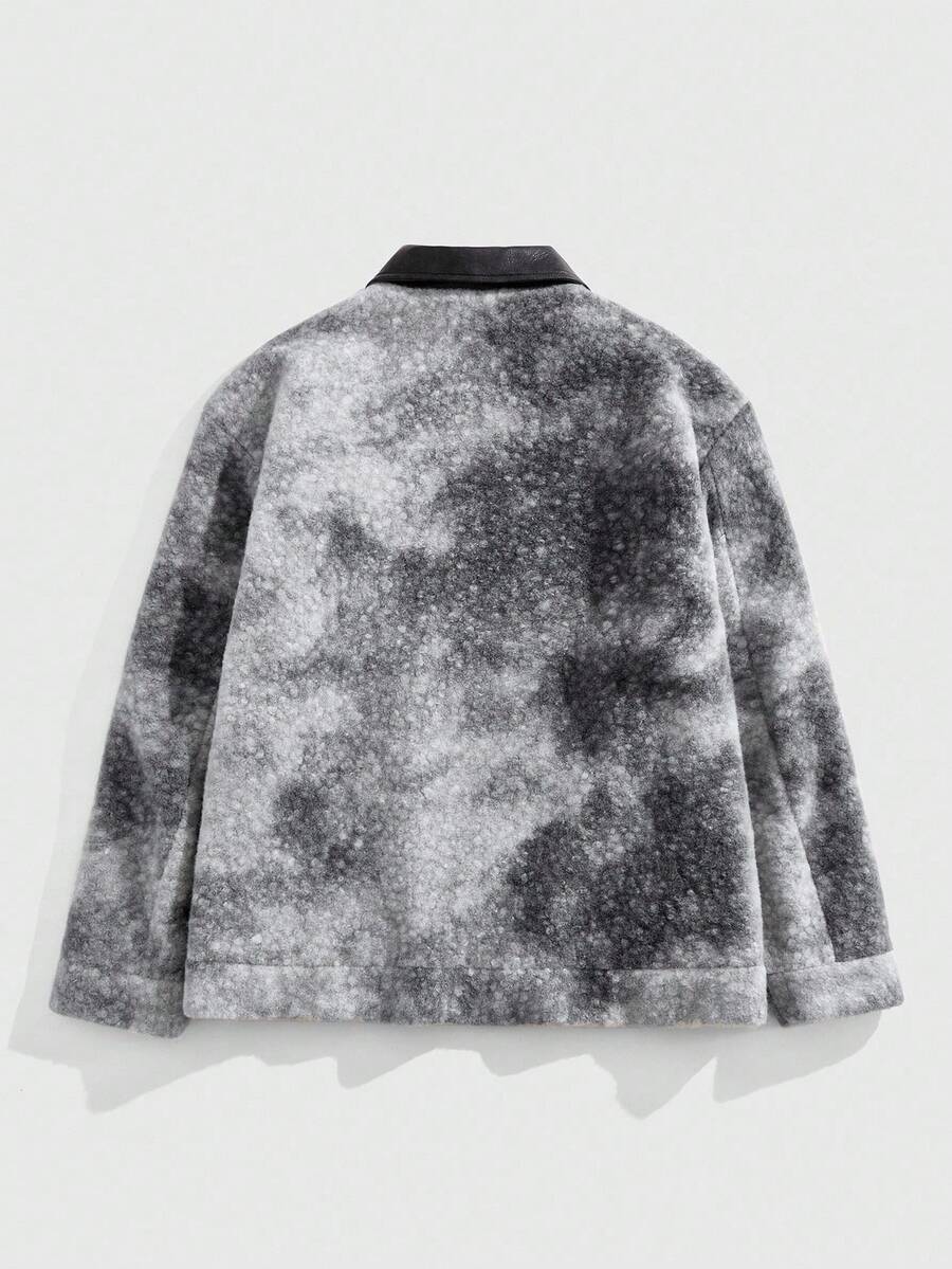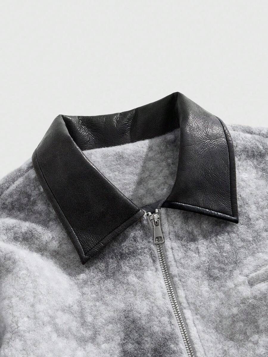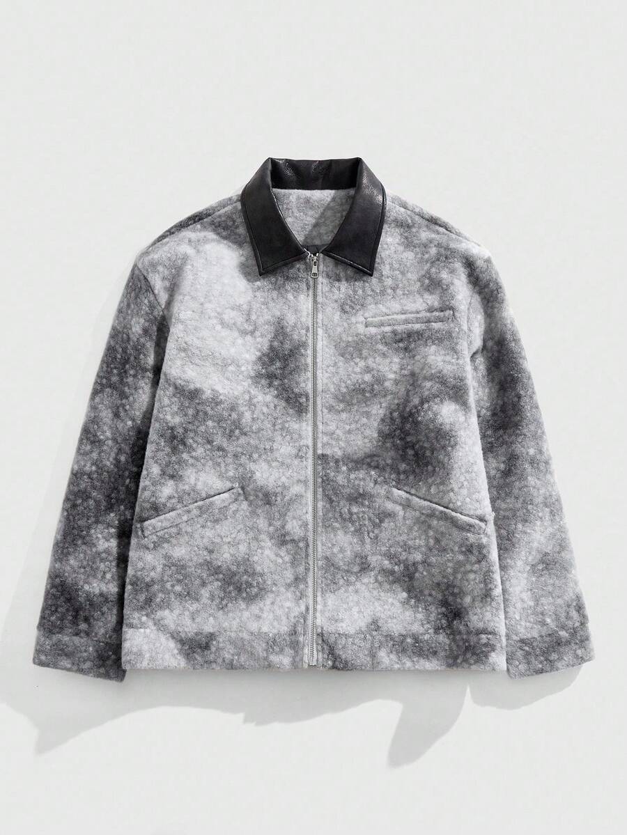 Street Life Men's Turndown Collar Patchwork Tie-Dye Long Sleeve Zipper Front Casual Jacket , Fall