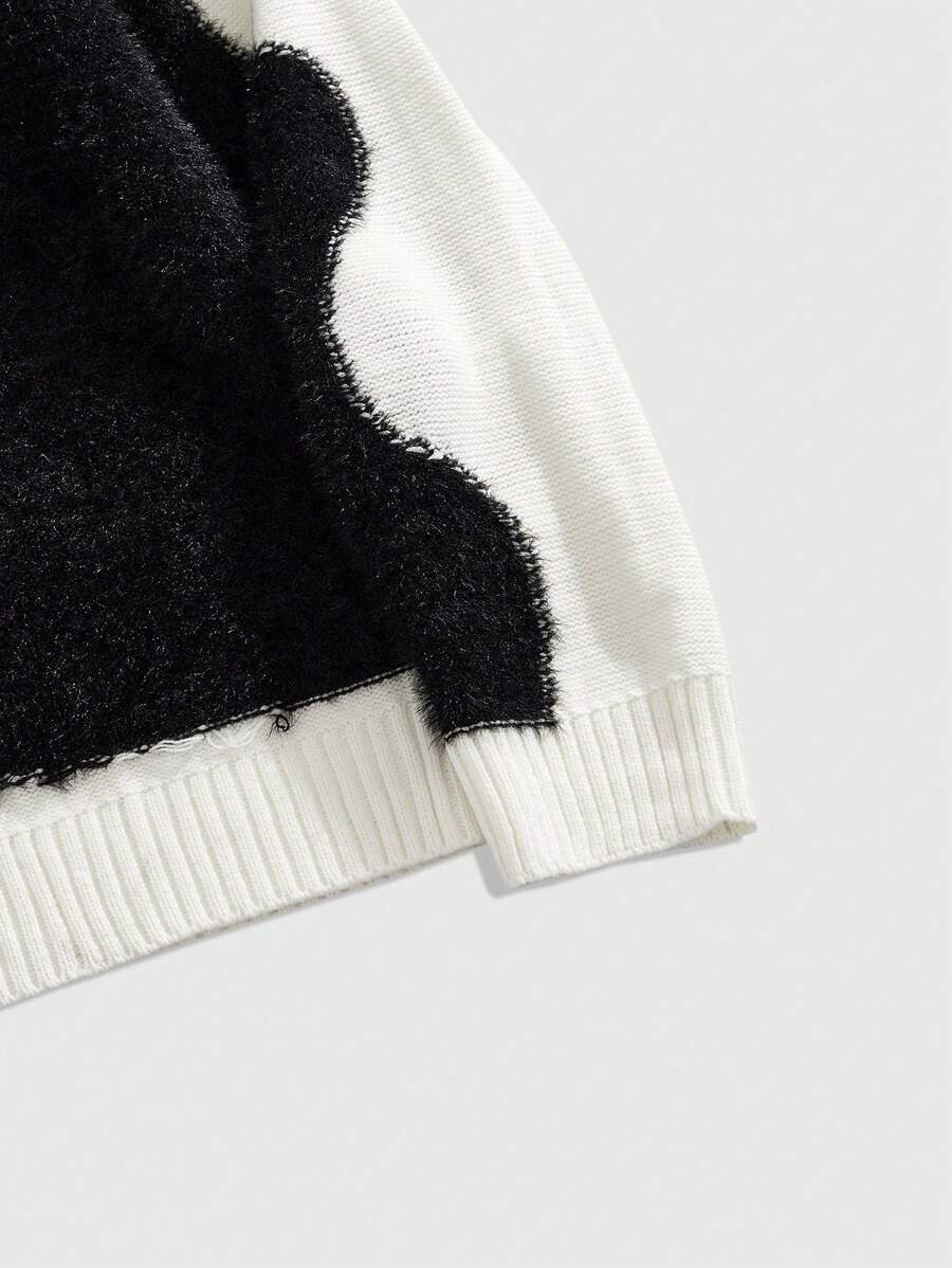 Street Life Men's V-Neck Jacquard Heart Pattern Cardigan Knit Sweater