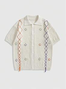 Street Life Men's Vacation Casual Color Block Hollow Out Knitted Sweater, Vacation