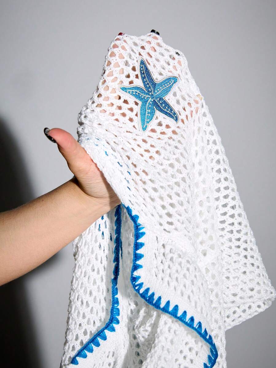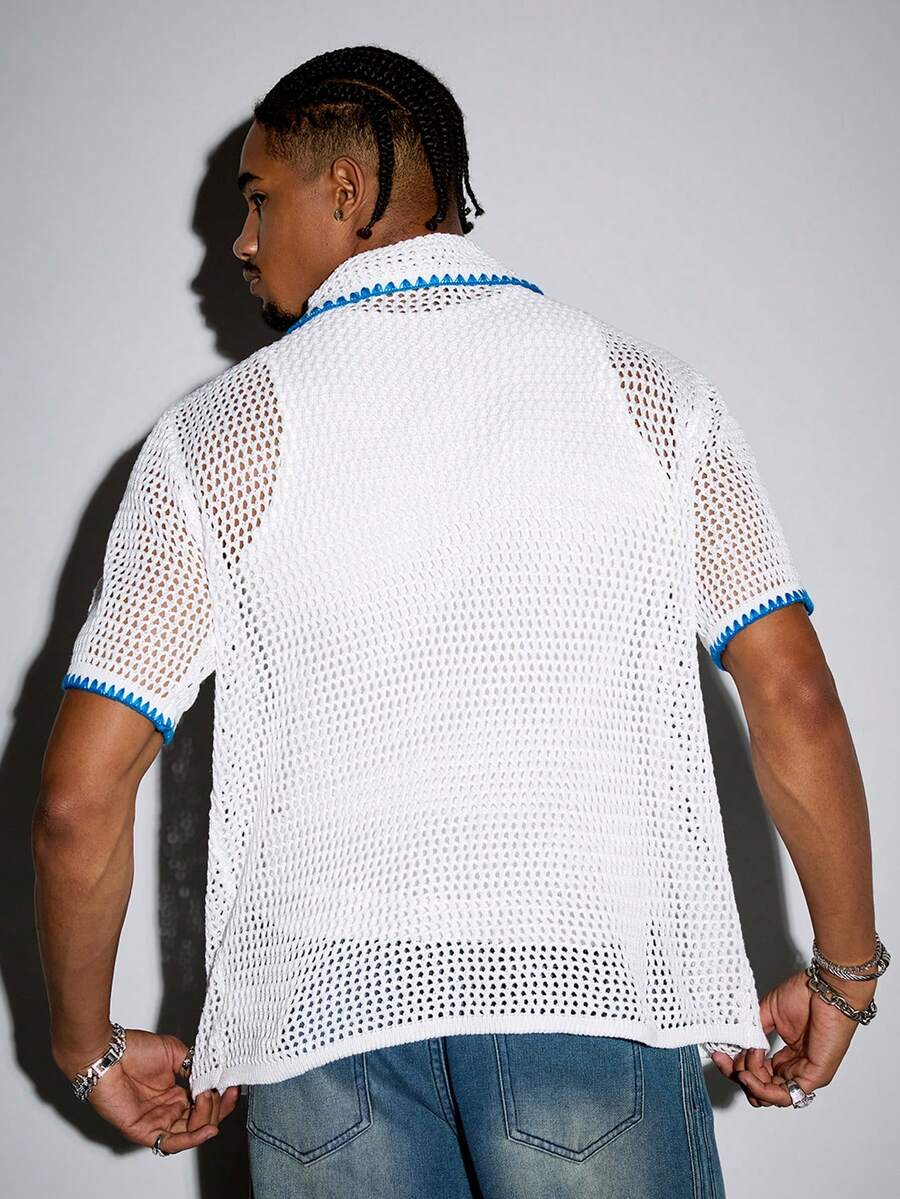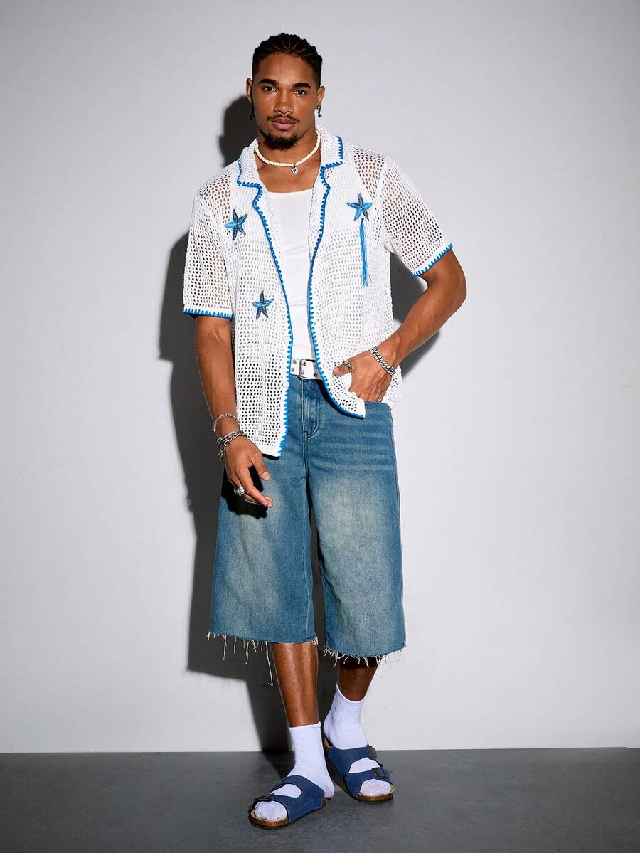 Street Life Men's Vacation Turndown Collar Open Front Starfish Print Knitted Top